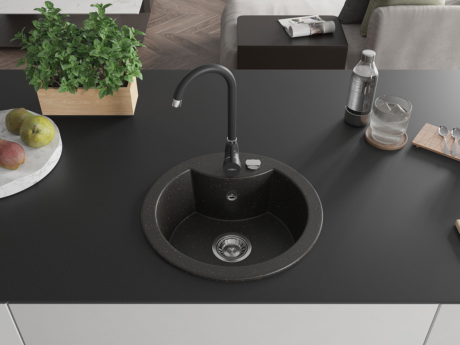 The sink is made of high quality granite. It is an elegant and, above all, practical complement to every kitchen, regardless of its style. High quality and granite durability ensure many years of use.