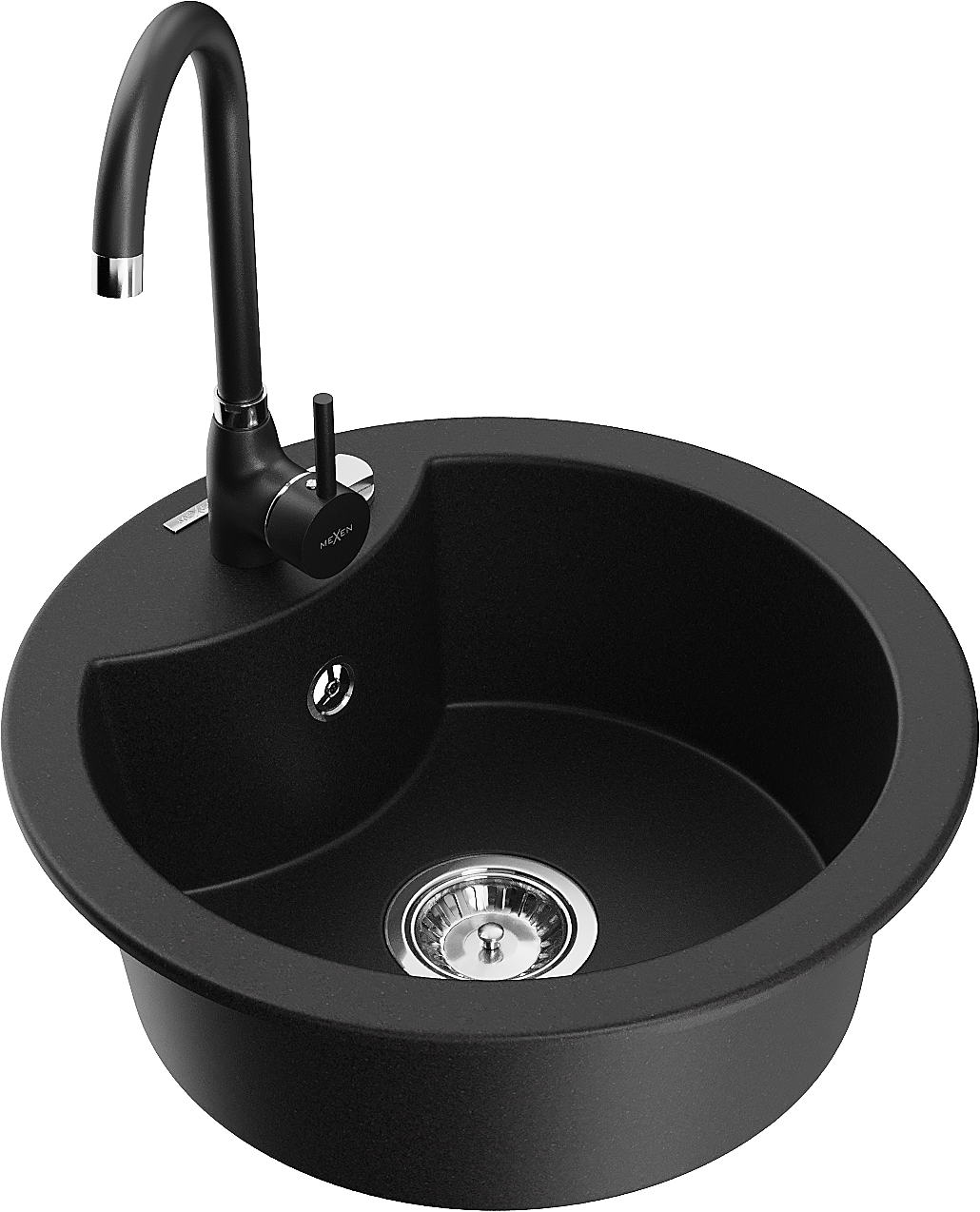 Mexen Diego granite sink 1-bowl with Telma kitchen tap, black - 6512-77-670200-70
