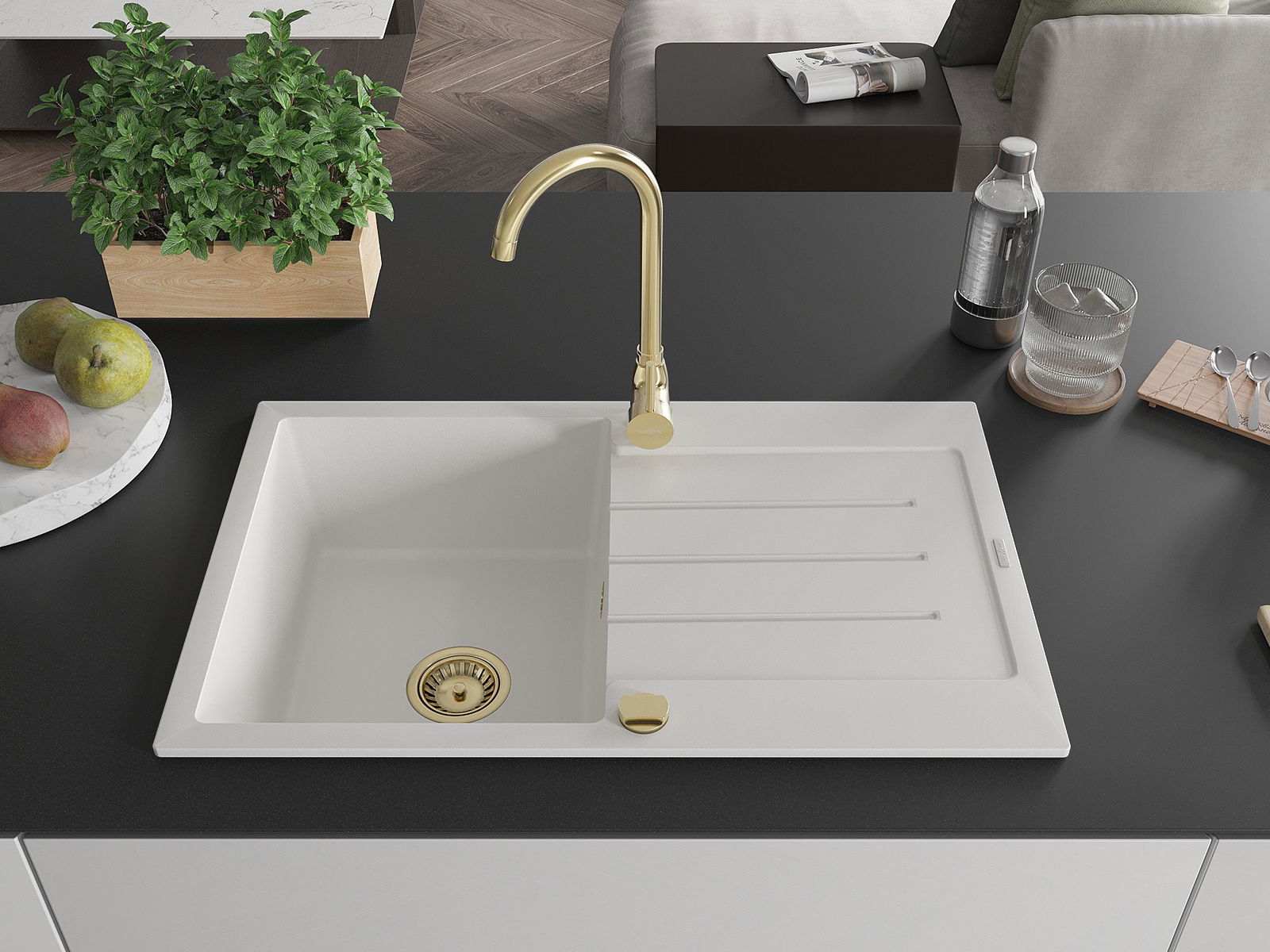 The surface of the sink is resistant to stains and discoloration, thanks to which it is easy to clean and retains its color for a long time. Aesthetic and practically complementing every kitchen.
