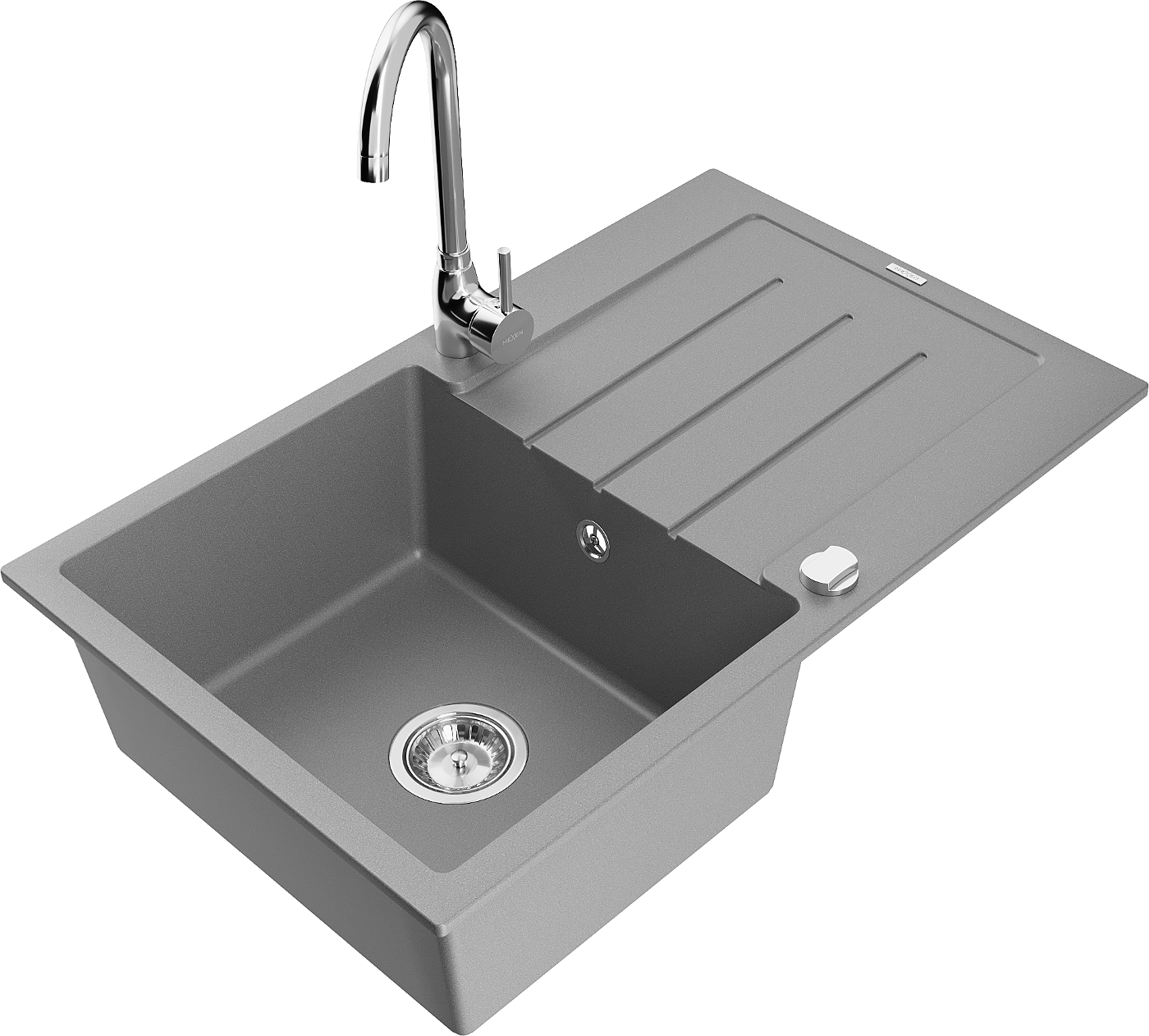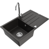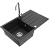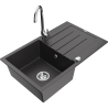Mexen Bruno 1-bowl granite sink with drainer and Telma kitchen tap, grey - 6513-71-670200-00