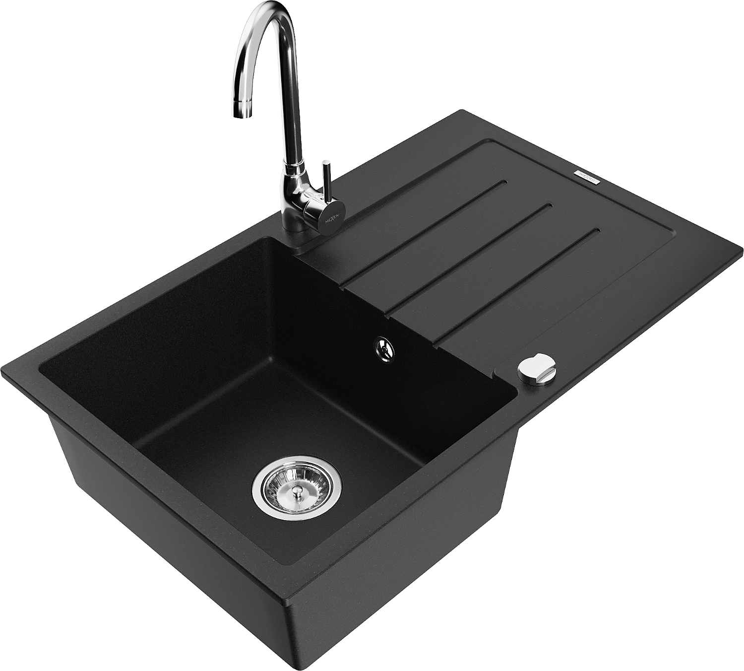 Mexen Bruno 1-Bowl Granite Sink with Drainer and Telma Kitchen Tap, Black - 6513-77-670200-00