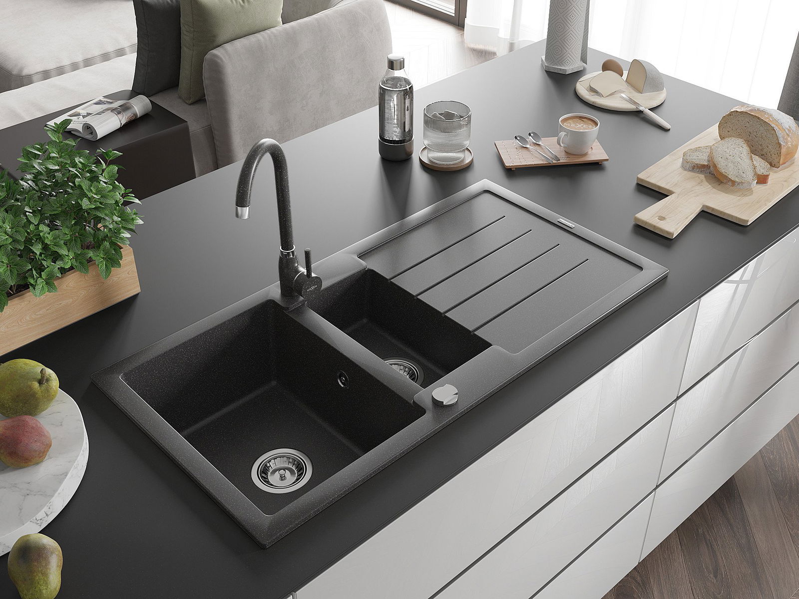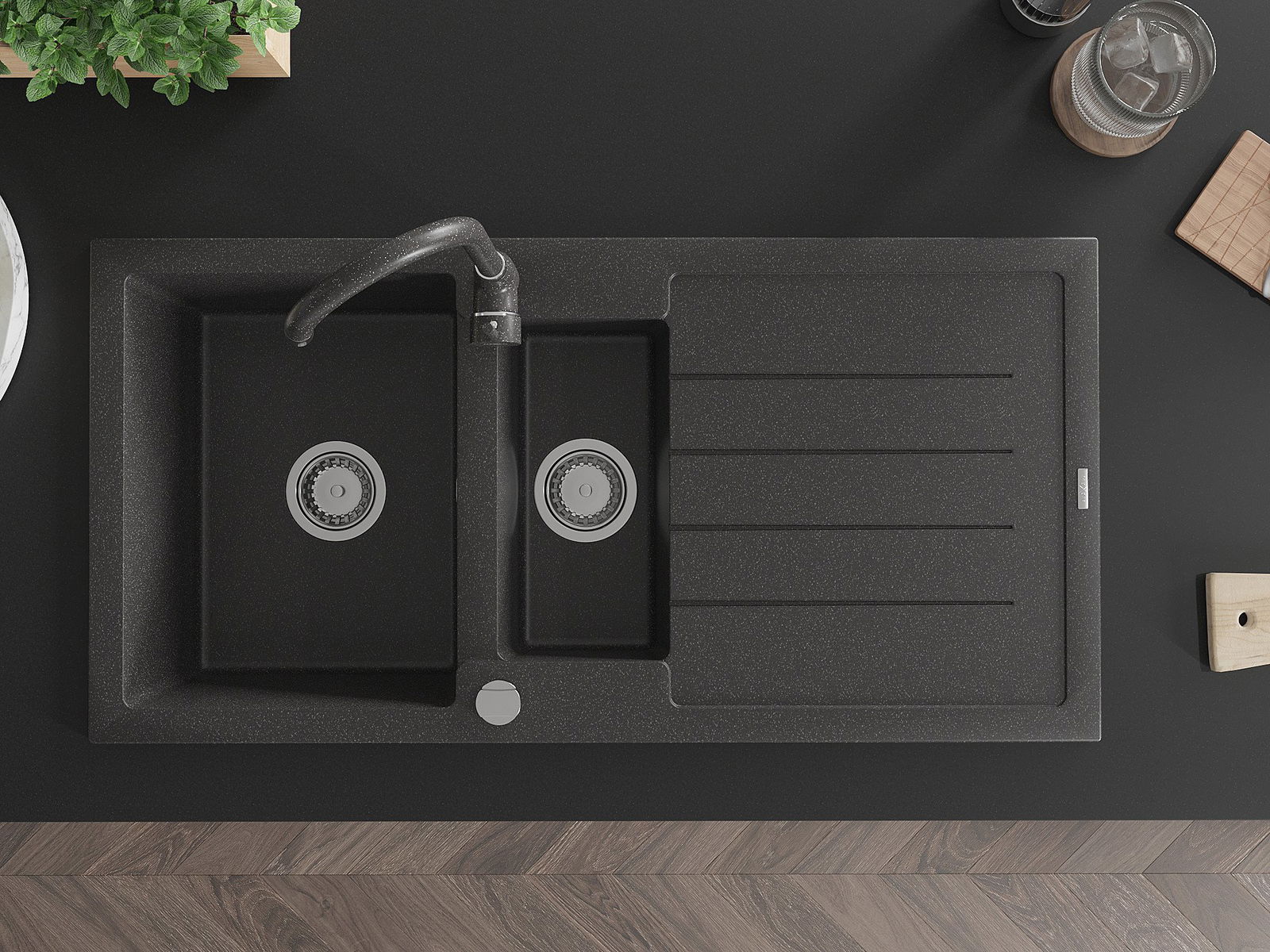 The sink is made of high quality granite. It is an elegant and, above all, practical complement to every kitchen, regardless of its style. High quality and granite durability ensure many years of use.