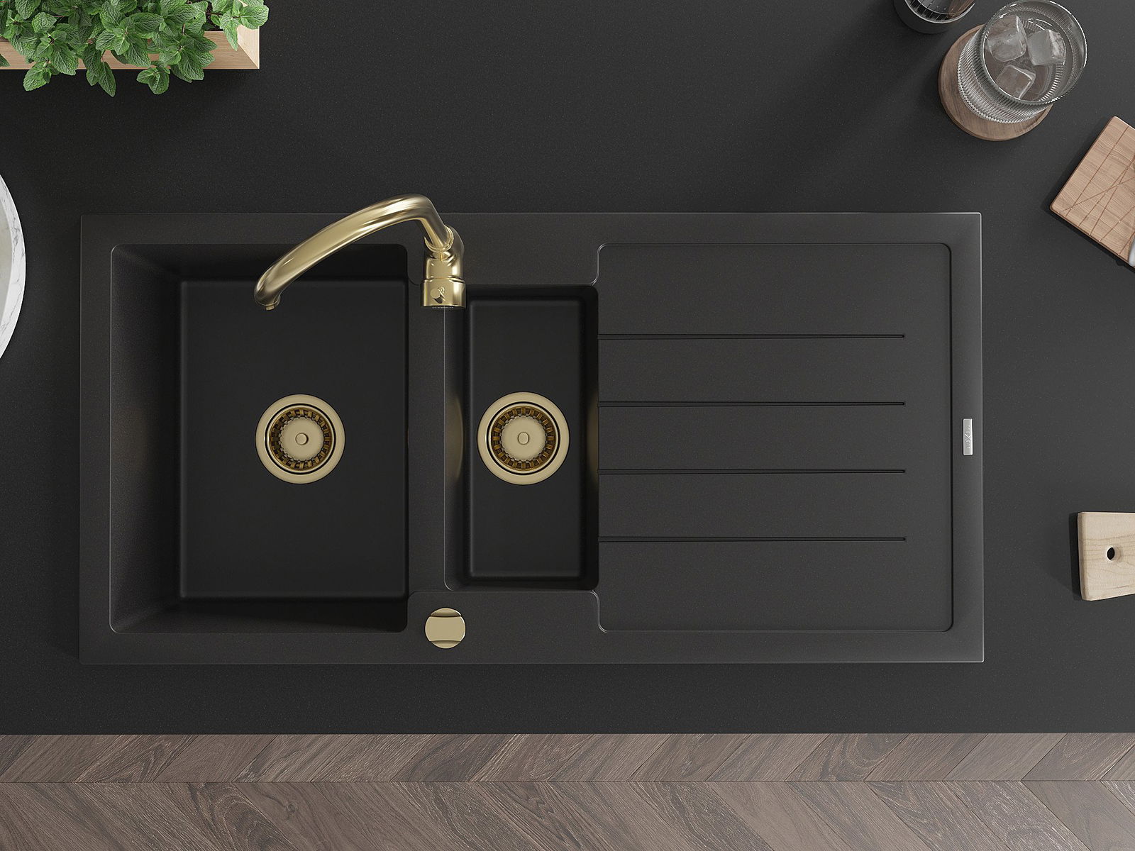 The sink is made of high quality granite. It is an elegant and, above all, practical complement to every kitchen, regardless of its style. High quality and granite durability ensure many years of use.