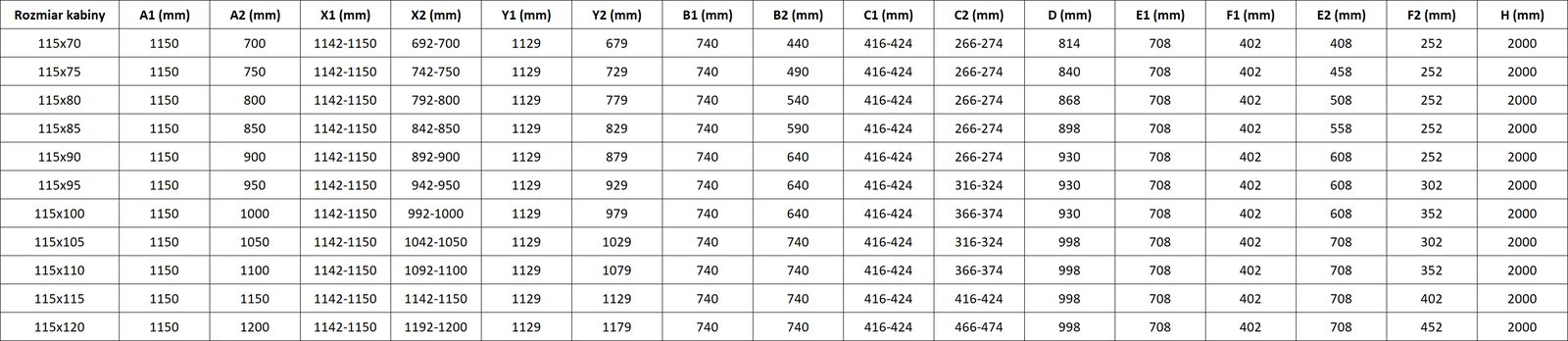 Size: 115x105 cm (left door 115 cm, right door 105 cm)