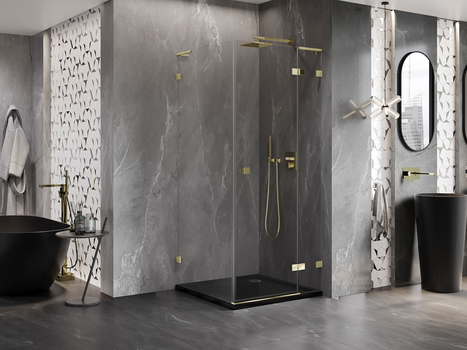 Mexen Lunar L shower enclosure hinged right 80 x 80 cm, transparent, gold - 834L-080-080-50-00-P