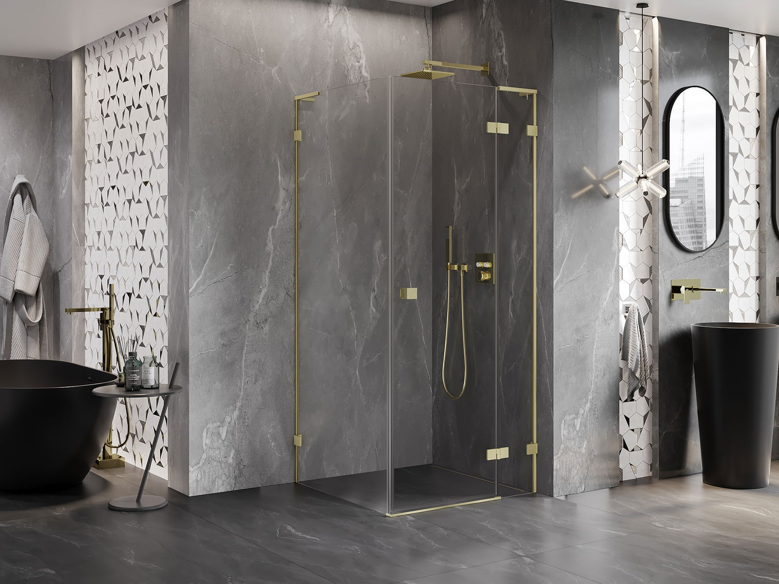 Mexen Lunar L right hinged shower enclosure 90 x 90 cm, transparent, brushed gold - 834L-090-090-55-00-P