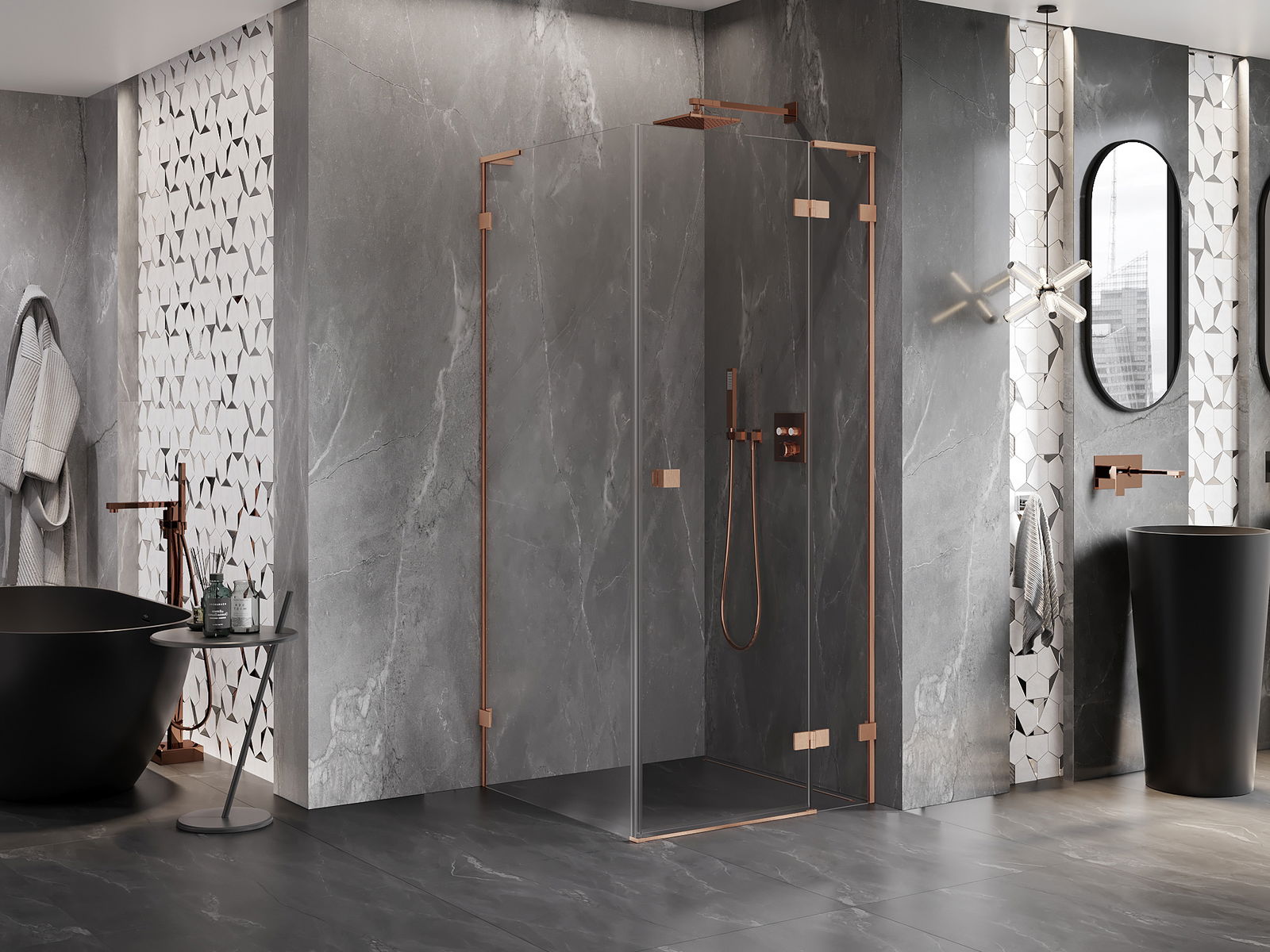 Mexen Lunar L right fold shower cabin 100 x 100 cm, transparent, brushed copper - 834L-100-100-65-00-P