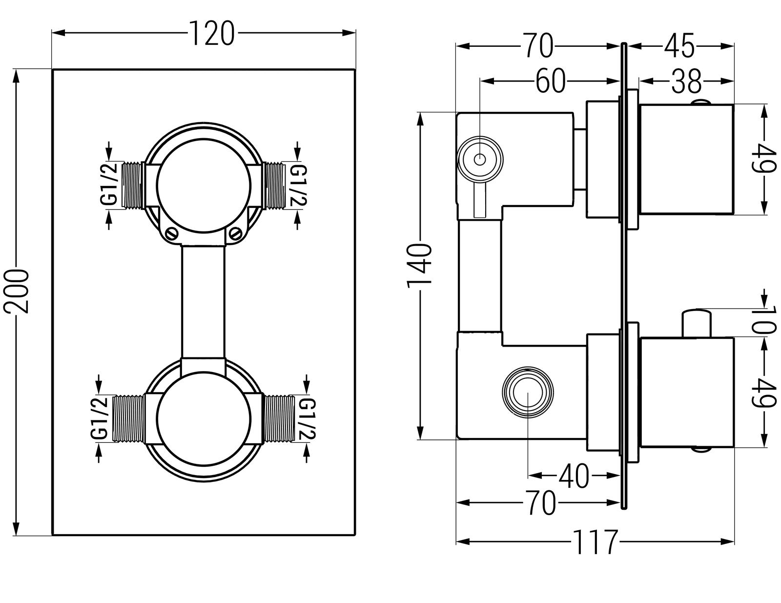 Connection: 2x Inlet 1/2" and 2x outlet 1/2"