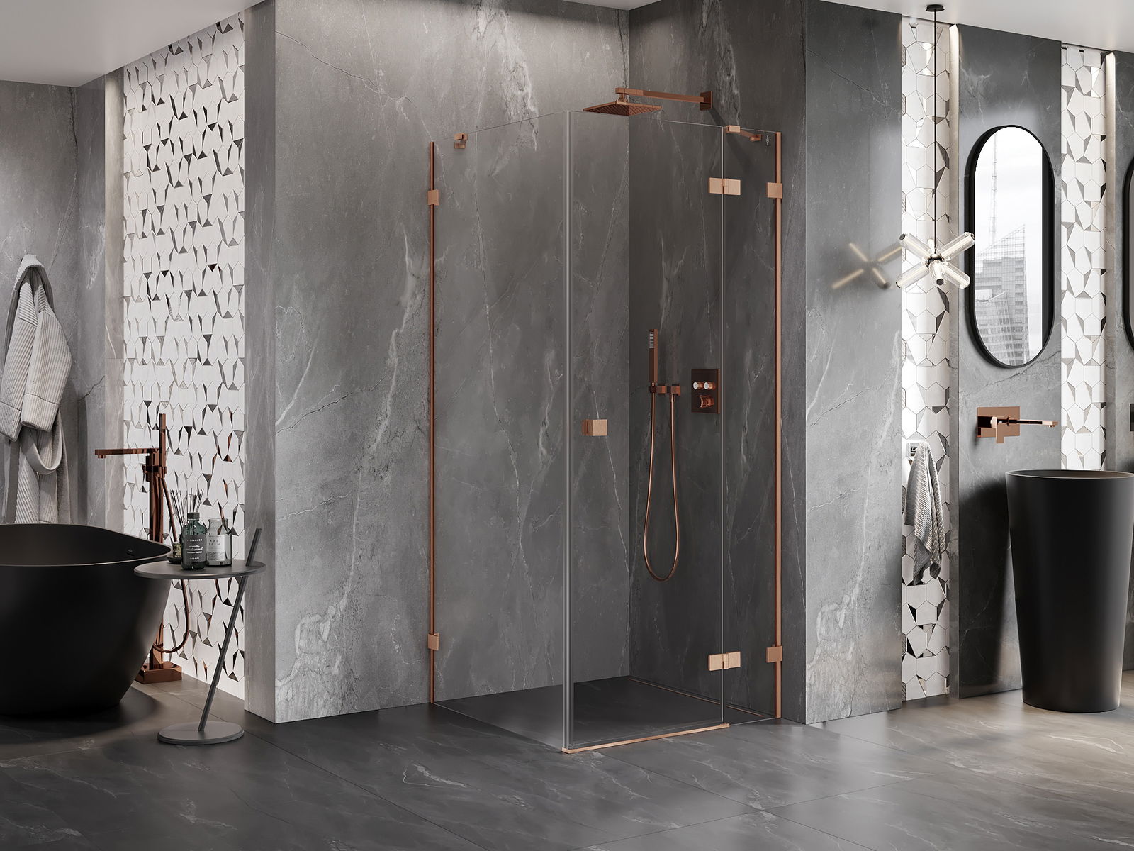 Mexen Lunar Right-Hinged Shower Enclosure 90 x 90 cm, Transparent, Brushed Copper - 834-090-090-65-00-P
