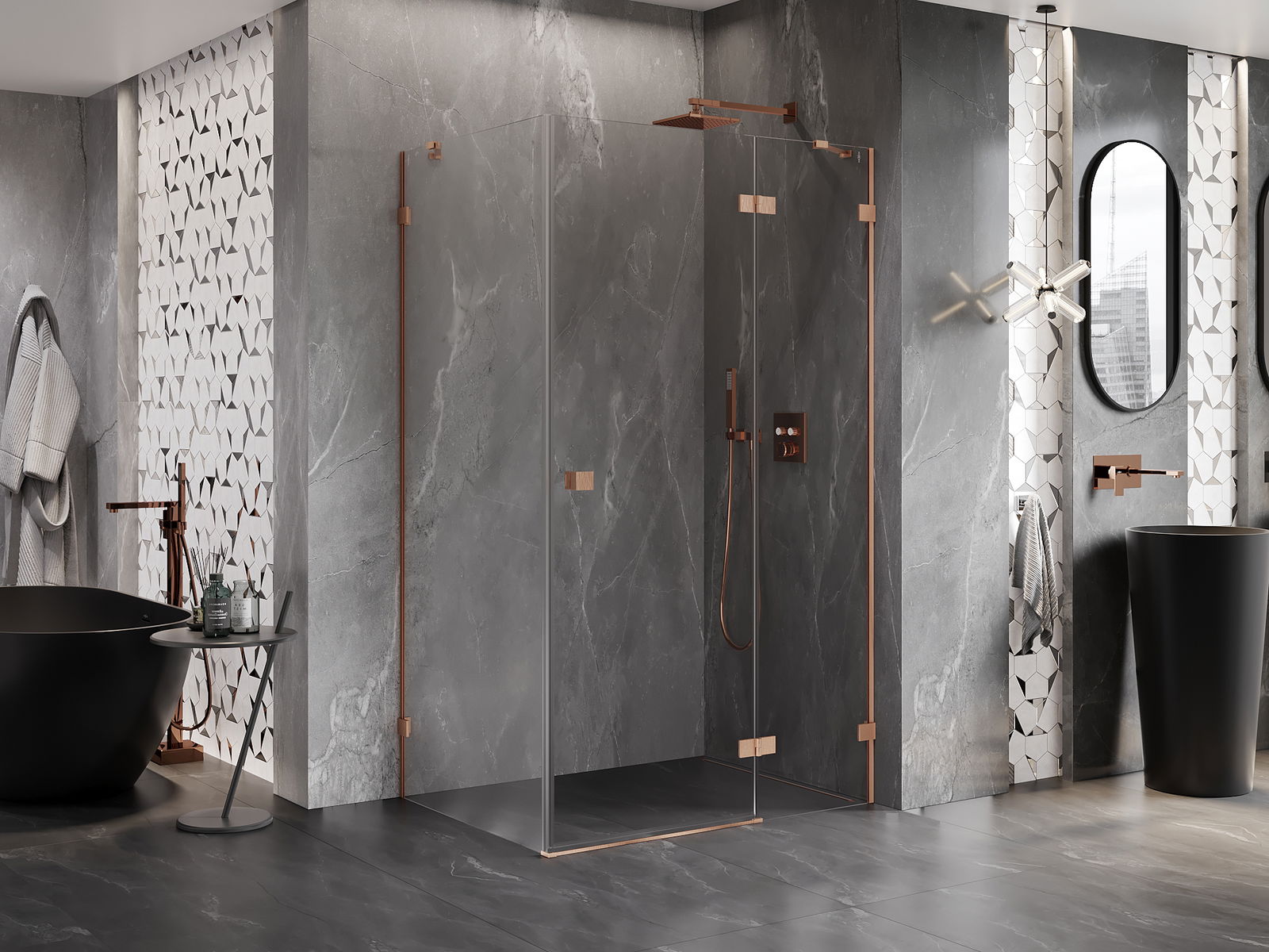 Mexen Lunar right opening shower enclosure 95 x 90 cm, transparent, brushed copper - 834-095-090-65-00-P