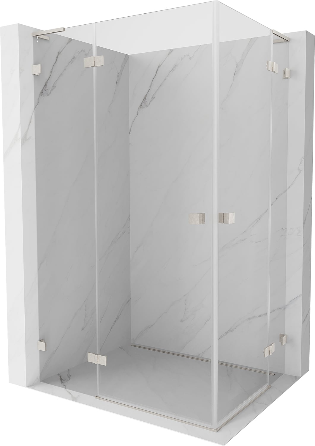 Mexen Lunar L Duo Left-Side Hinged Shower Enclosure 110 x 100 cm, Transparent, Brushed Nickel - 834L-110L-100P-97-00