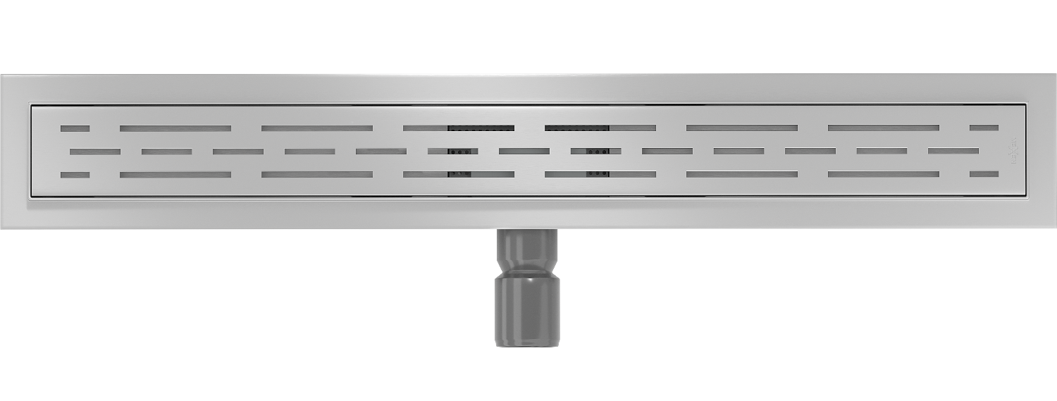 The linear drain is mounted at a depth of only 52 mm. The low depth allows for easier surface preparation for the drain installation and easy leveling, ensuring high aesthetics and effective water drainage.