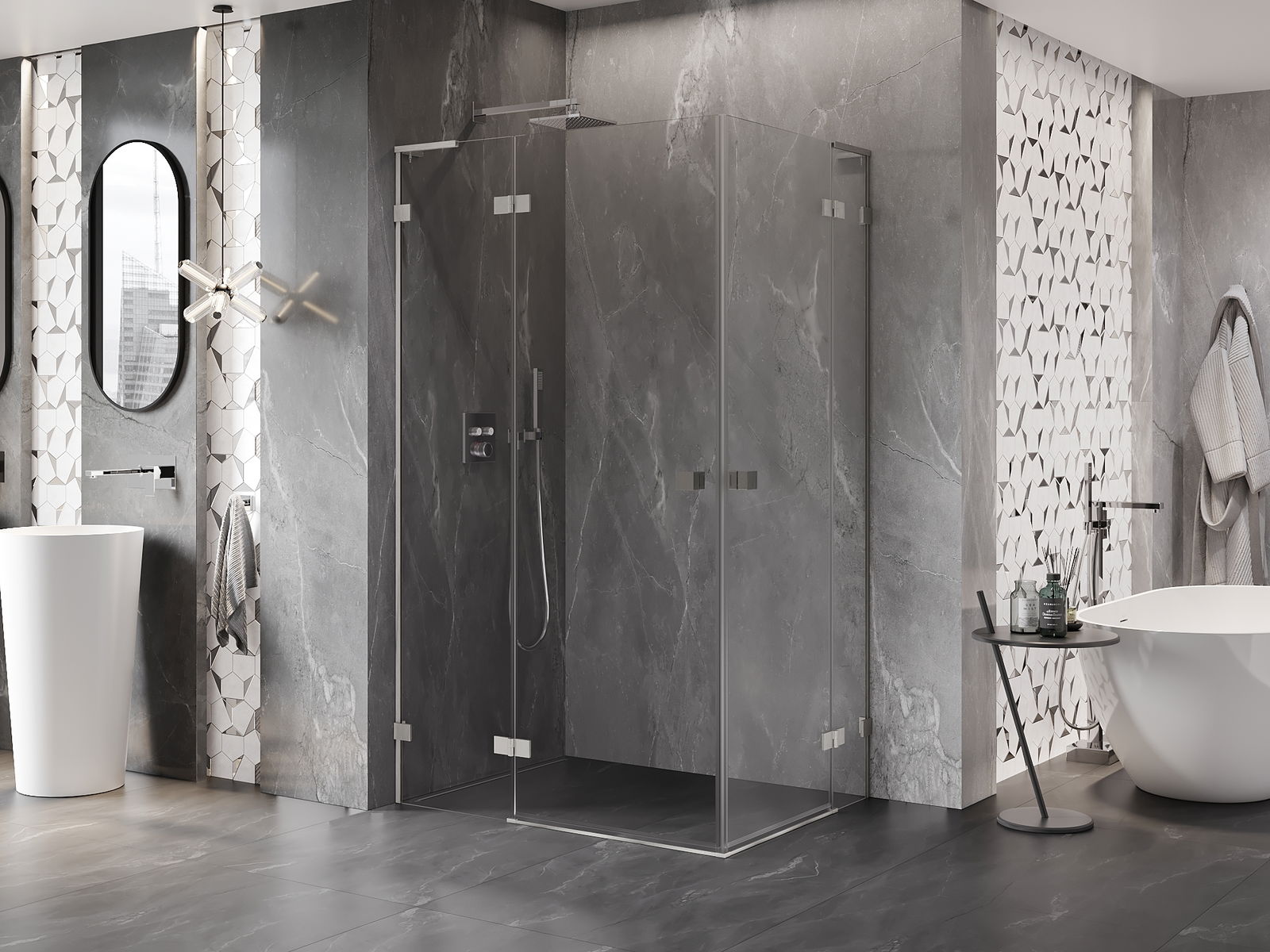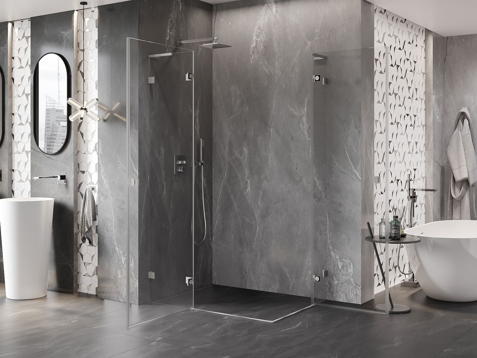 A handy and comfortable handle made from durable and resistant metal. Its trendy shape combined with a finish matched to the colour of the profiles gives the whole a modern and stylish look, highlighting the aesthetics of every bathroom.