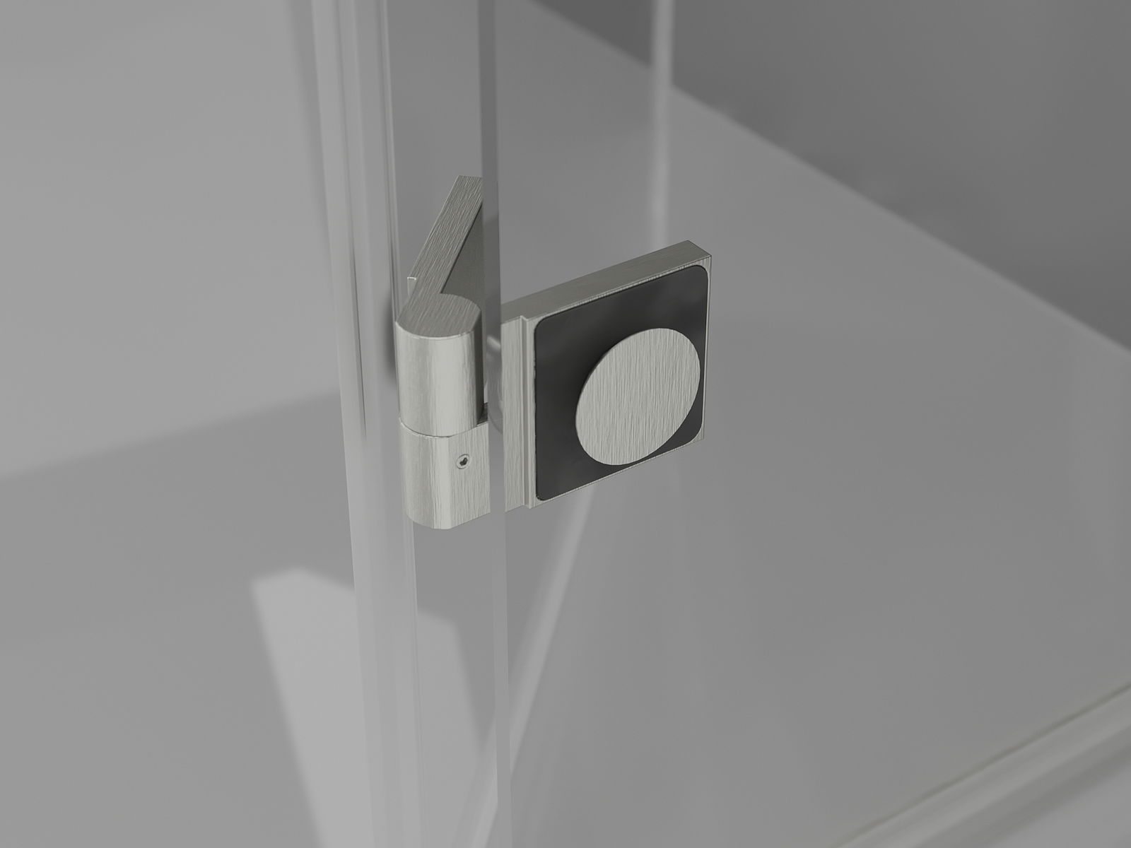Brass handles and hinges flush with the glass surface