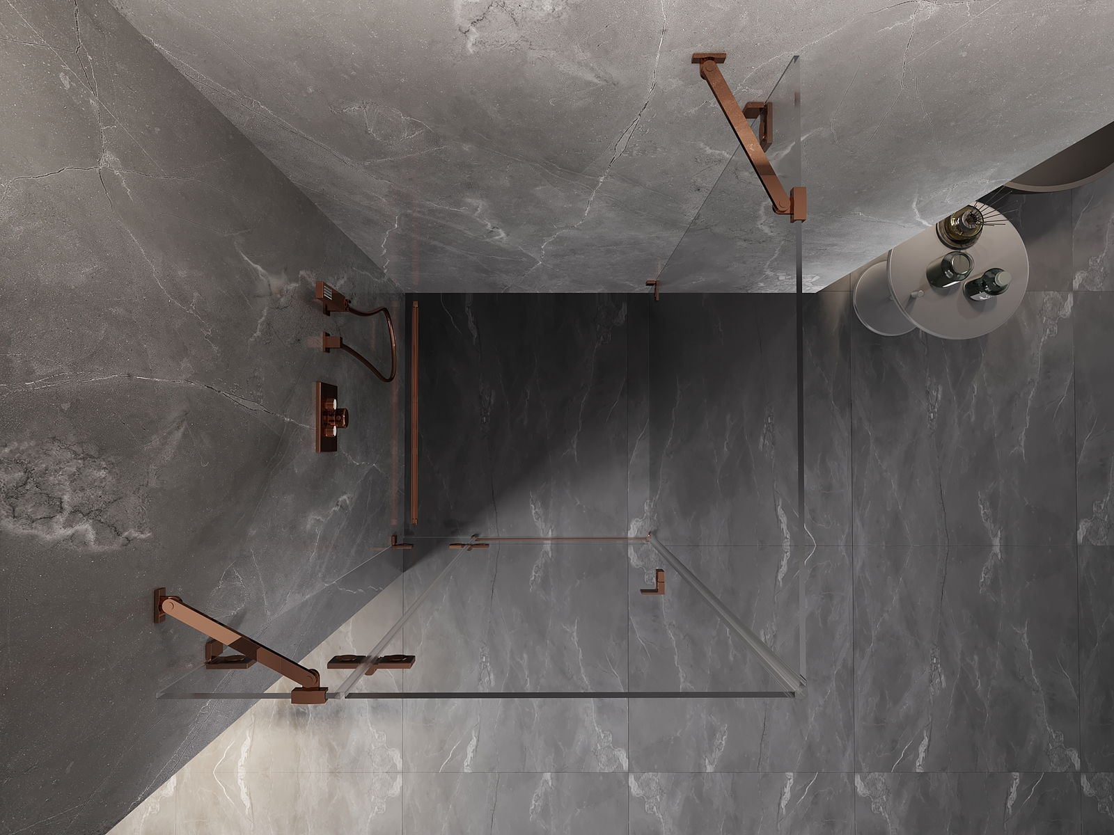 Clamps and hinges are made from very durable brass, additionally creating a flush glass surface. This is an excellent choice that combines elegance, durability, and modern design. Such solutions enhance the aesthetic of the shower while also making it easier to maintain cleanliness.