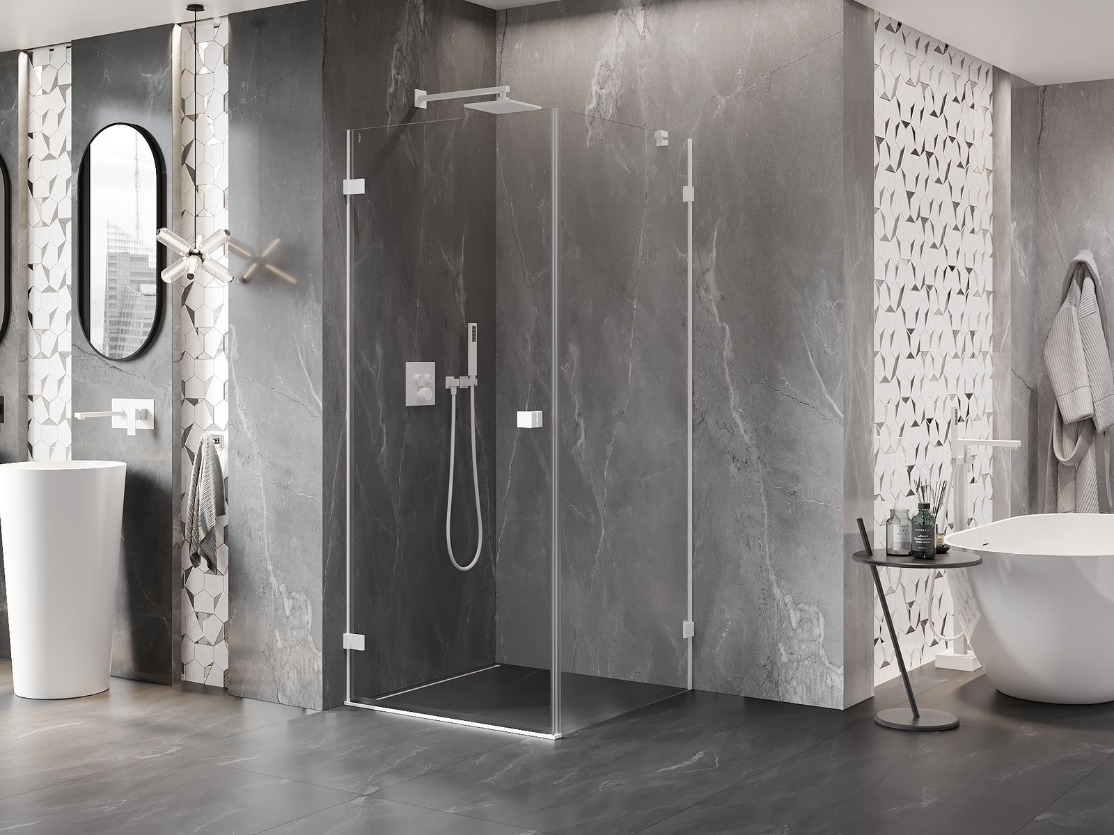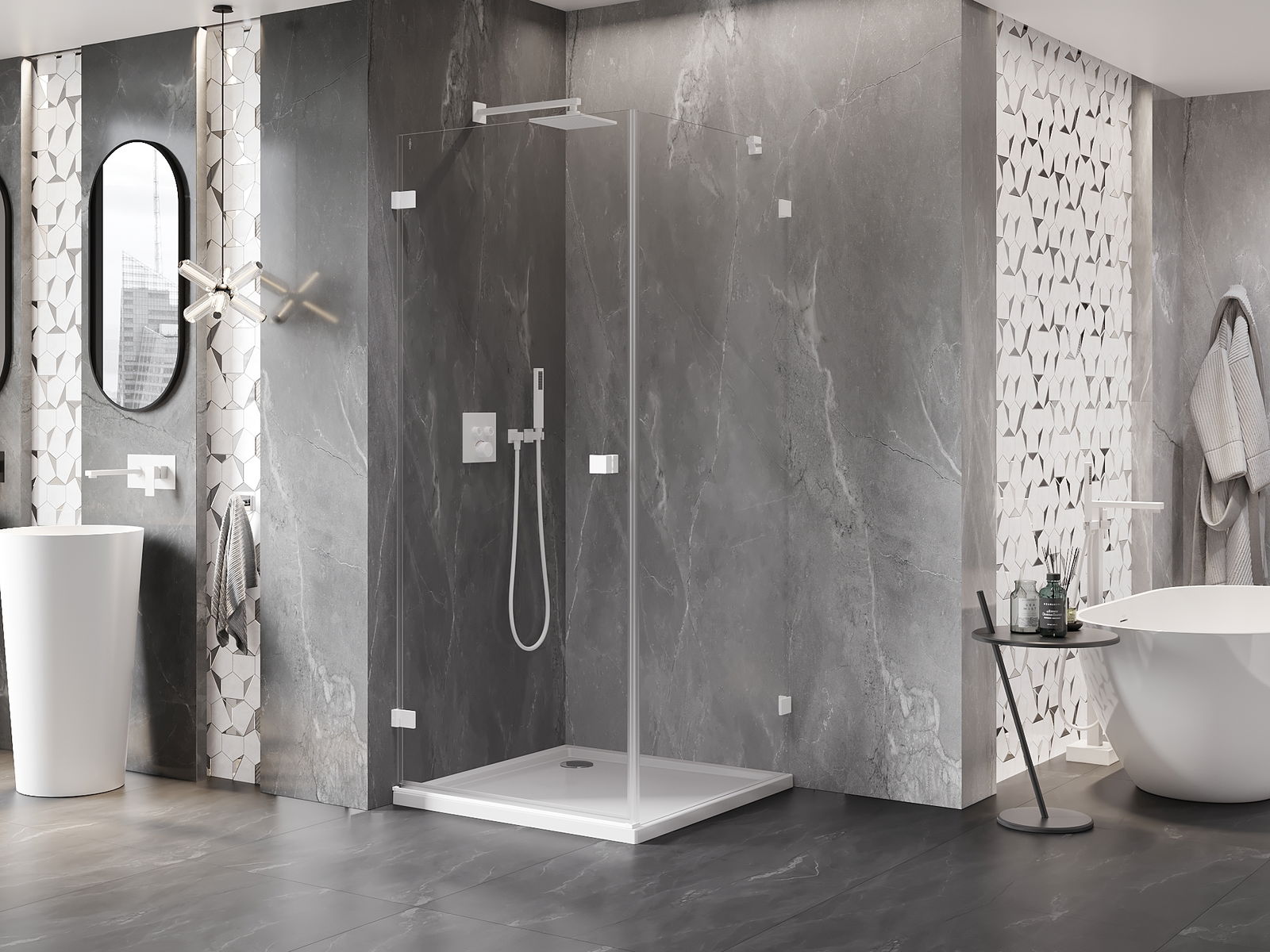 Mexen Lunar-B left-hand opening shower enclosure 90 x 90 cm, transparent, white - 832-090-090-20-00-L