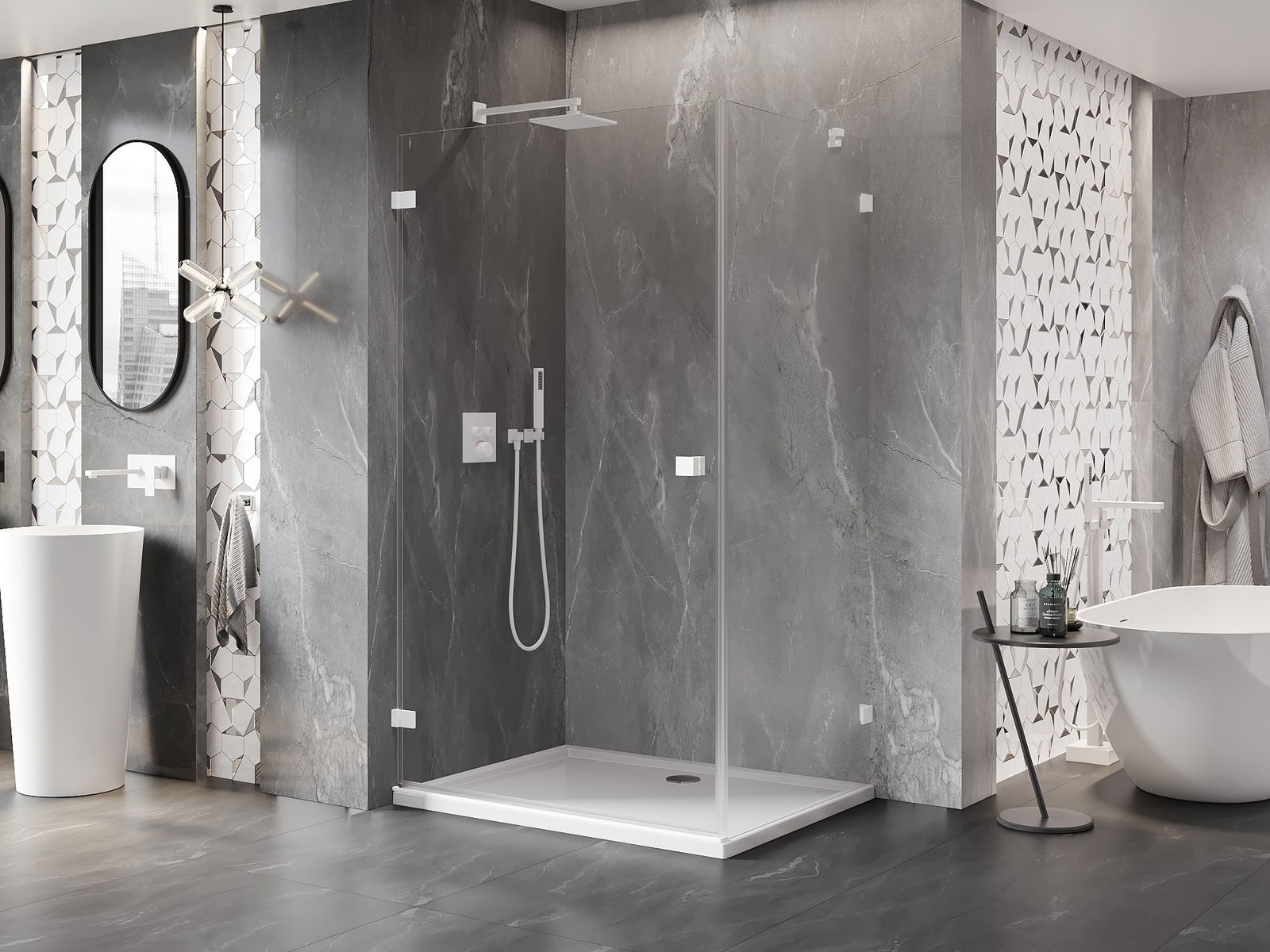 A handy and comfortable handle made from durable and resistant metal. Its trendy shape combined with a finish matched to the colour of the profiles gives the whole a modern and stylish look, highlighting the aesthetics of every bathroom.