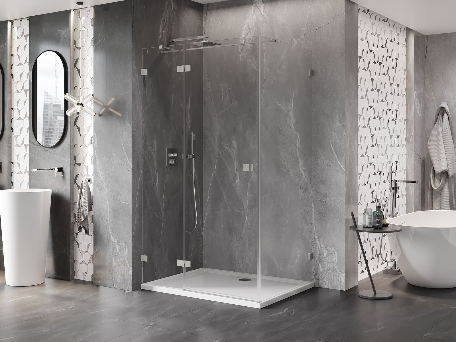 A handy and comfortable handle made from durable and resistant metal. Its trendy shape combined with a finish matched to the colour of the profiles gives the whole a modern and stylish look, highlighting the aesthetics of every bathroom.