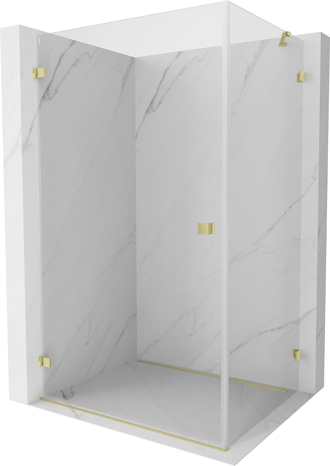 Mexen Lunar-B left hinged shower enclosure 95 x 70 cm, transparent, brushed gold - 832-095-070-55-00-L