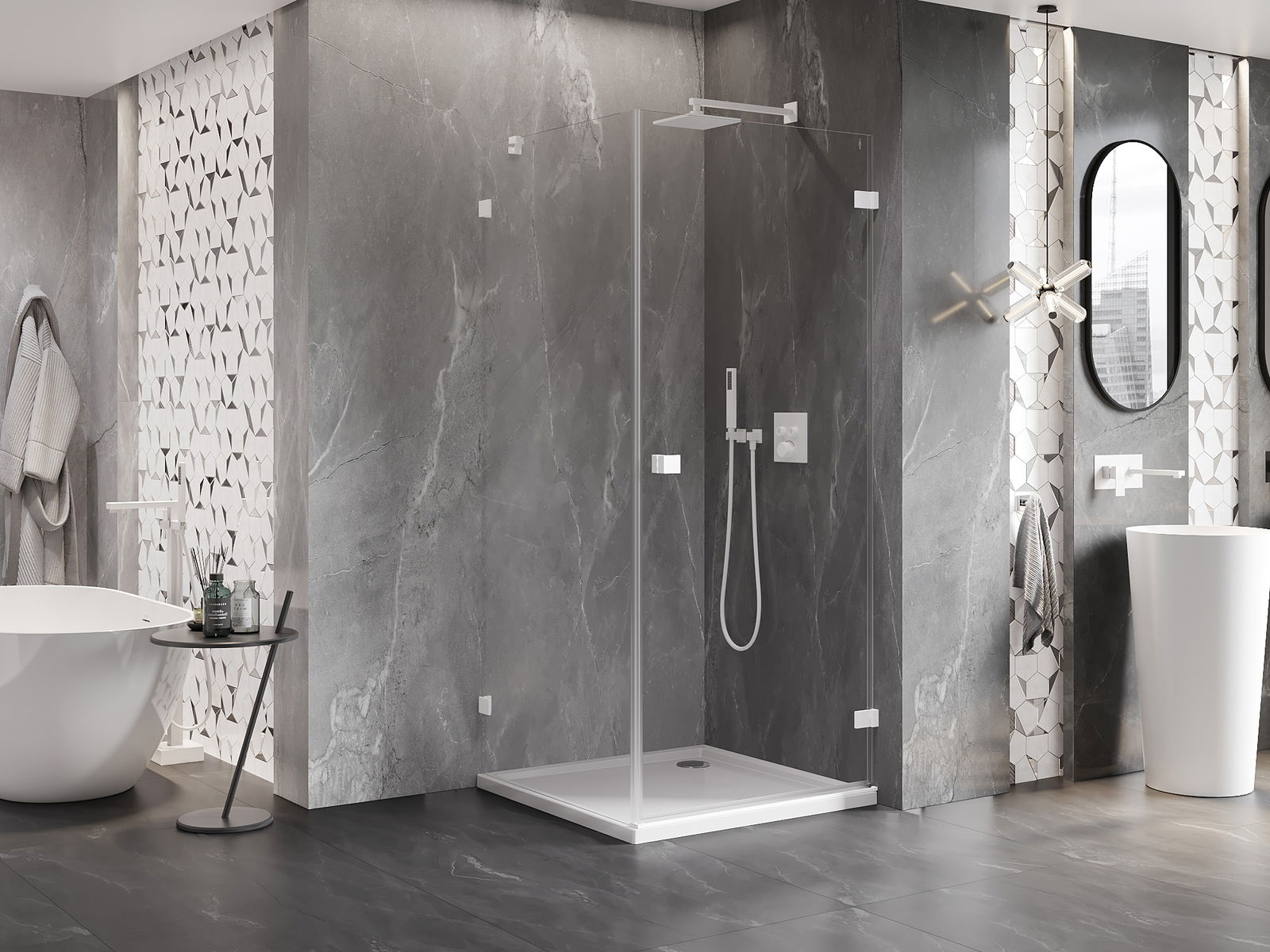 A handy and comfortable handle made from durable and resistant metal. Its trendy shape combined with a finish matched to the colour of the profiles gives the whole a modern and stylish look, highlighting the aesthetics of every bathroom.