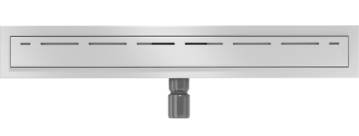 The linear drain is mounted at a depth of only 52 mm. The low depth allows for easier surface preparation for the drain installation and easy leveling, ensuring high aesthetics and effective water drainage.
