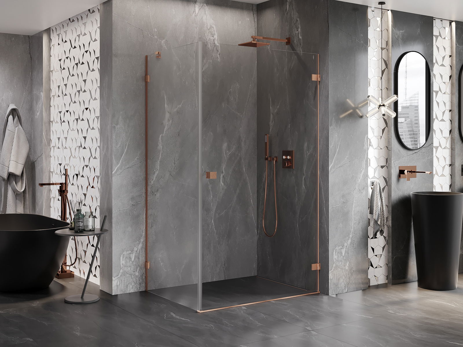 Mexen Lunar-B right swing shower enclosure 90 x 70 cm, transparent, brushed copper - 832-090-070-65-00-P