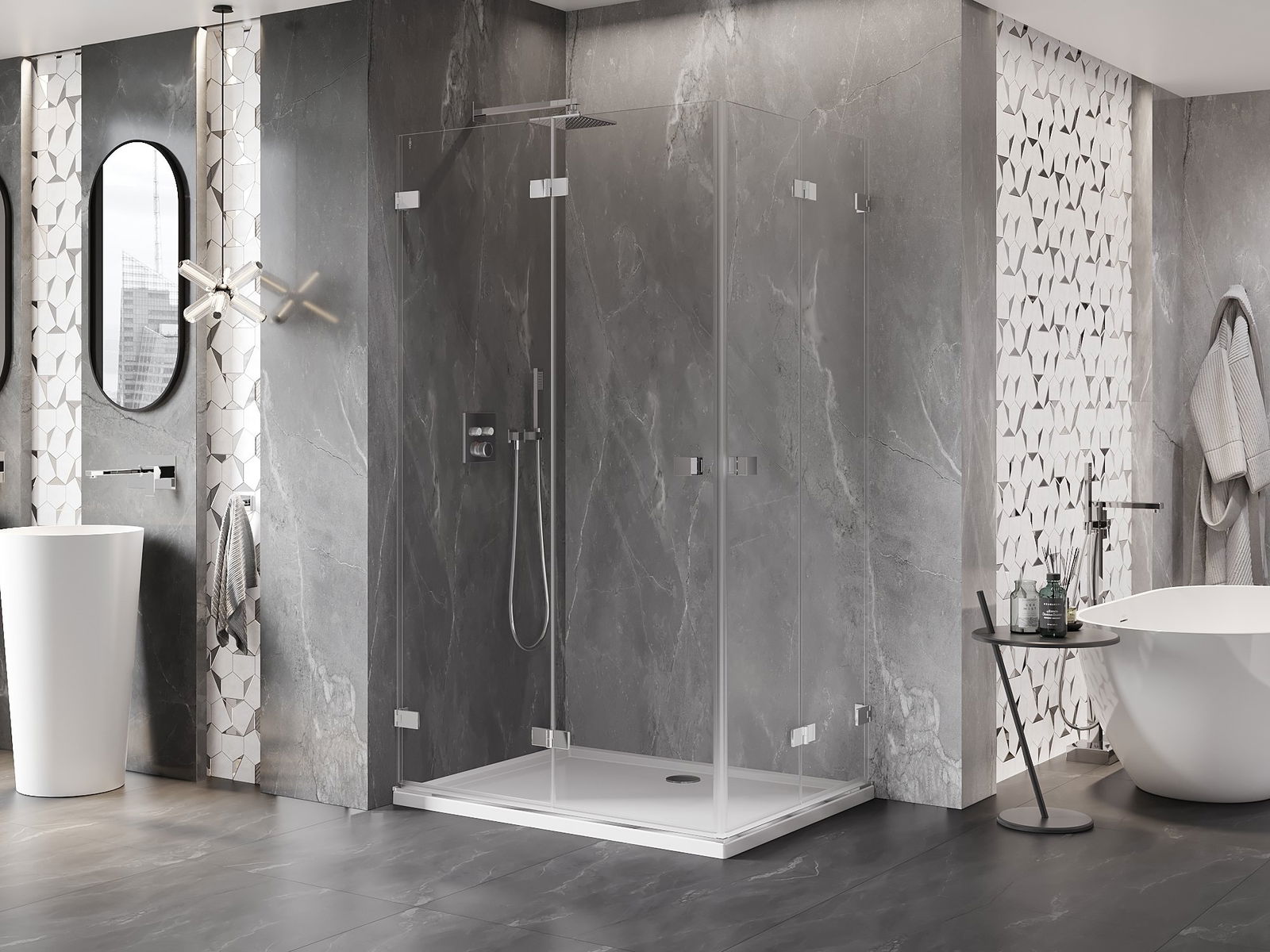 The ability to fold the door, both outside and inside, allows you to get more space when not using the shower. It is an ideal solution for smaller bathrooms, maximally using the available surface.