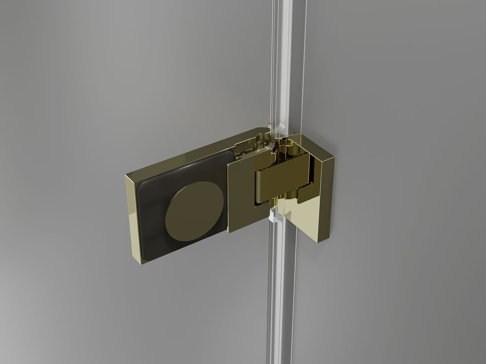 Brass clamps and hinges flush with the glass surface