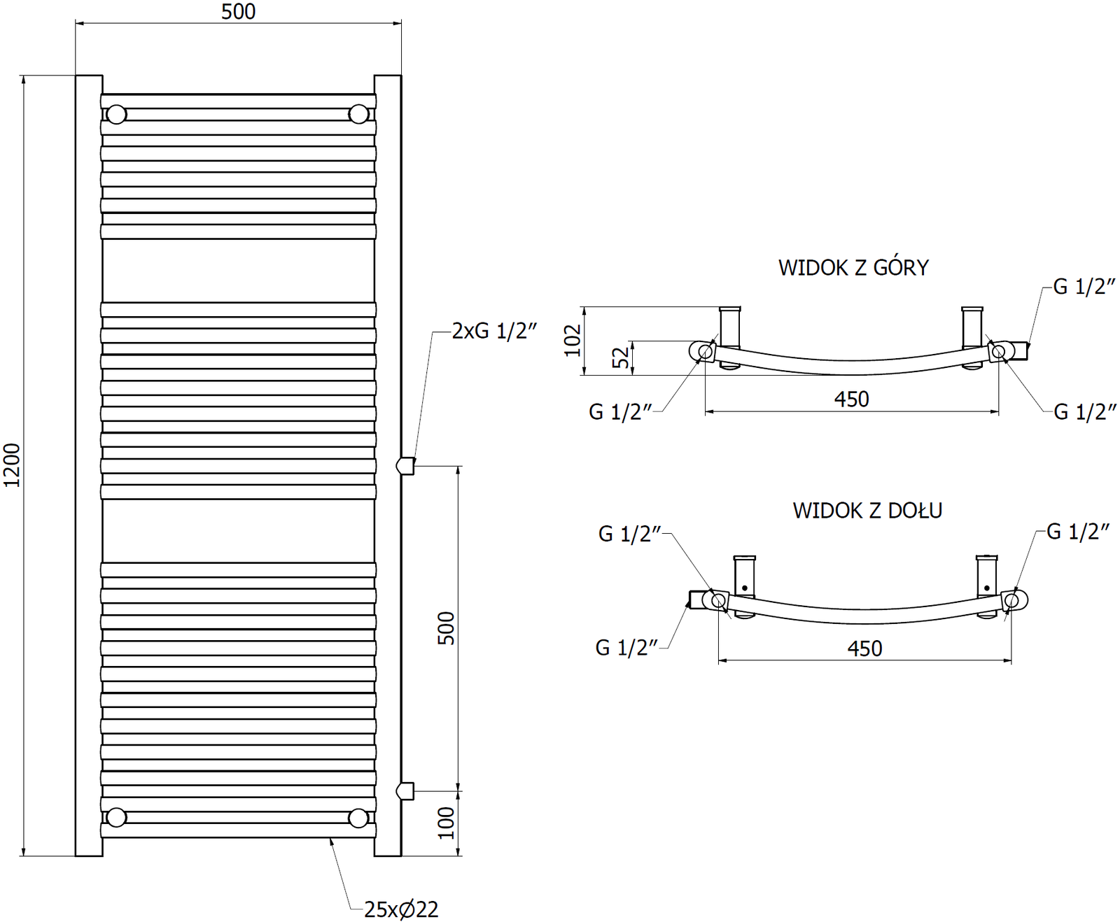 Mexen Ares is the ideal choice for your bathroom. The radiator with dimensions 1200 x 500 mm and a power of 531 W in elegant black color RAL 9005, made of durable steel, ensures high thermal efficiency at a maximum operating pressure of 0.6 Mpa. Thanks to the option of side or bottom connection with spacing of 50 cm or 45 cm, you can adjust it to your needs. Corrosion-resistant with the possibility of installing a heater, it has a durable paint finish. Set includes hangers, plugs, and air vent.