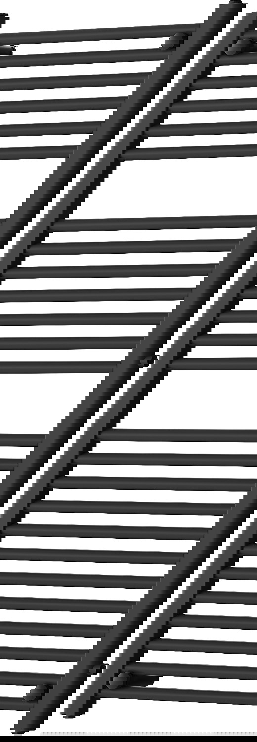 Mexen Mars is a modern bathroom radiator measuring 1200 x 500 mm, which fits perfectly into your bathroom. It features a heating power of 528 W and is finished in an elegant black color RAL 9005, making it both functional and aesthetic. Made of durable steel, it ensures longevity and resistance to corrosion thanks to the high-quality lacquer coating. It operates at a maximum temperature of 95 °C and a pressure of 0.6 Mpa. The set includes mounting elements and the option to install a heater, increasing its versatility.