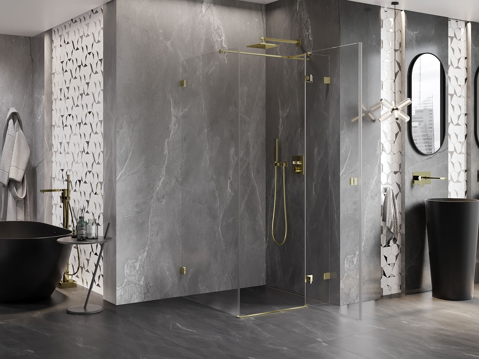 A handy and comfortable handle made from durable and resistant metal. Its trendy shape combined with a finish matched to the colour of the profiles gives the whole a modern and stylish look, highlighting the aesthetics of every bathroom.
