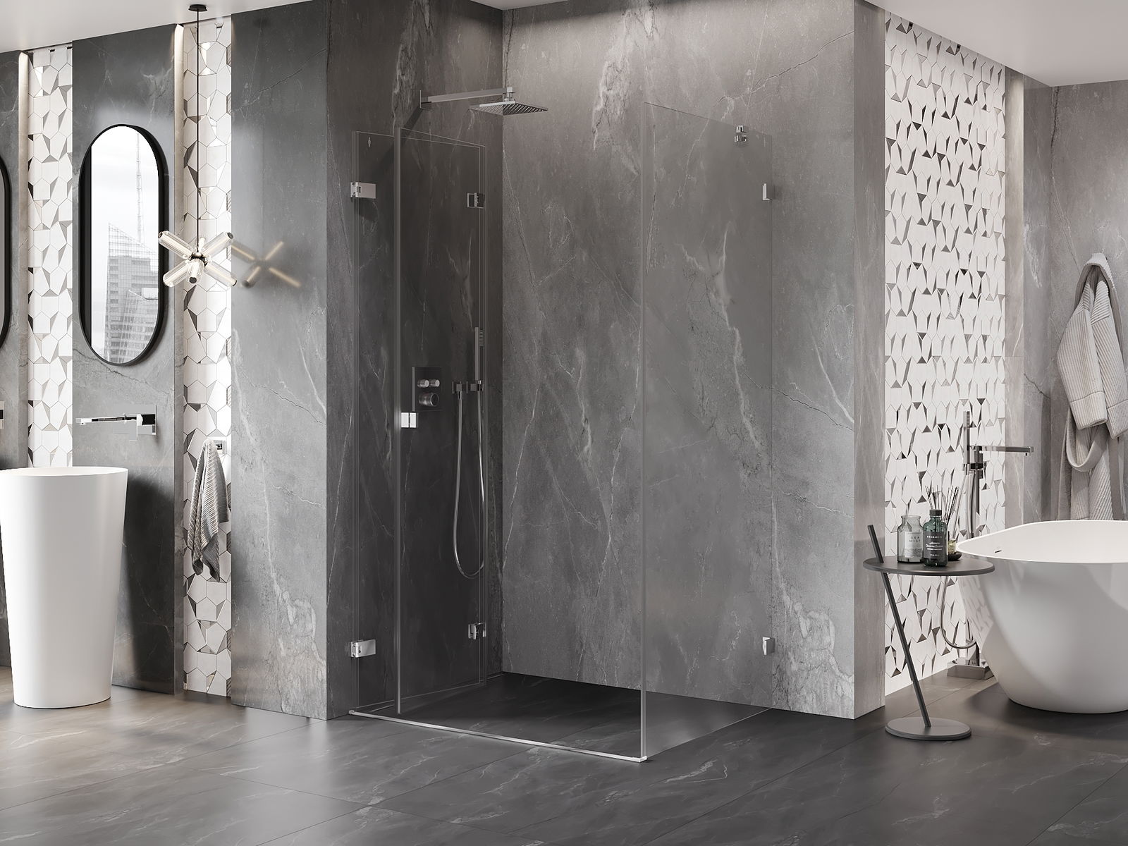 A handy and comfortable handle made from durable and resistant metal. Its trendy shape combined with a finish matched to the colour of the profiles gives the whole a modern and stylish look, highlighting the aesthetics of every bathroom.