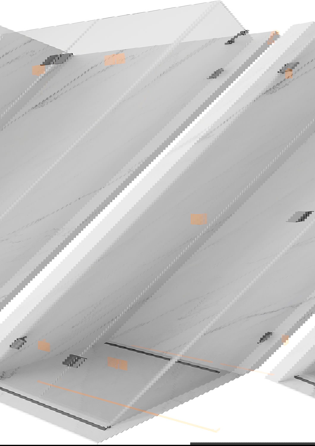 Clamps and hinges are made from very durable brass, additionally creating a flush glass surface. This is an excellent choice that combines elegance, durability, and modern design. Such solutions enhance the aesthetic of the shower while also making it easier to maintain cleanliness.