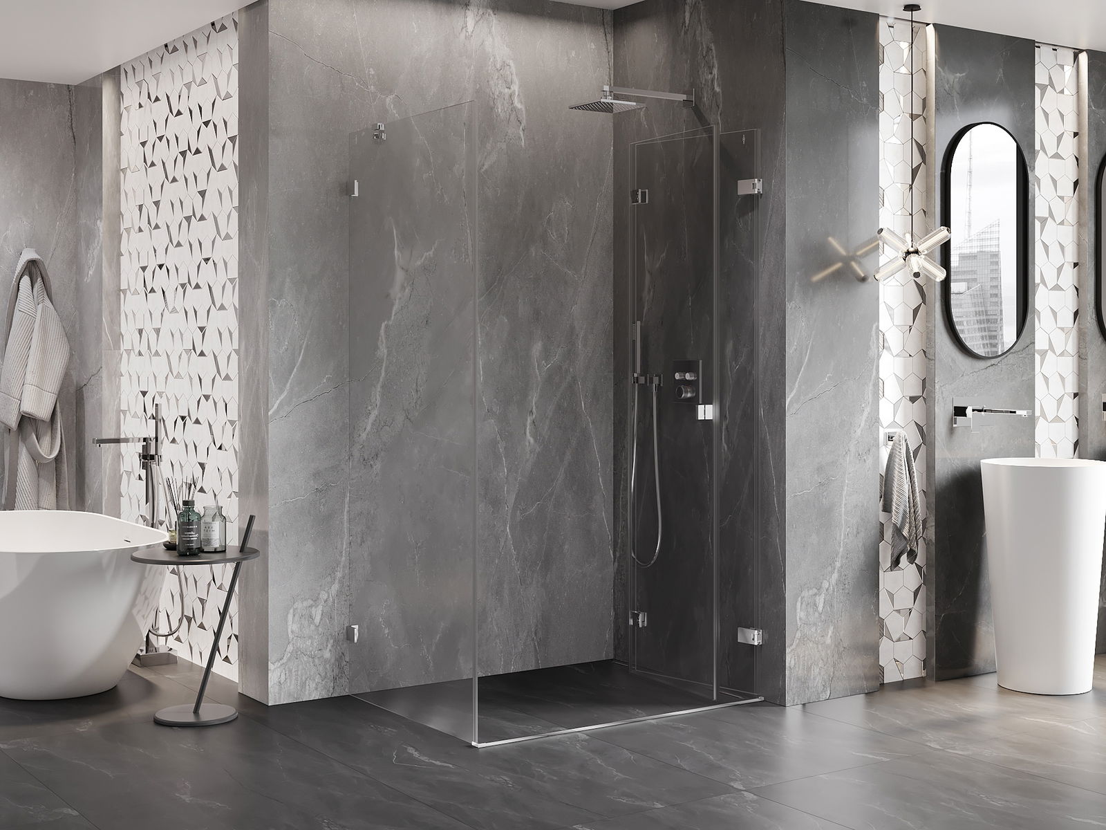 A handy and comfortable handle made from durable and resistant metal. Its trendy shape combined with a finish matched to the colour of the profiles gives the whole a modern and stylish look, highlighting the aesthetics of every bathroom.