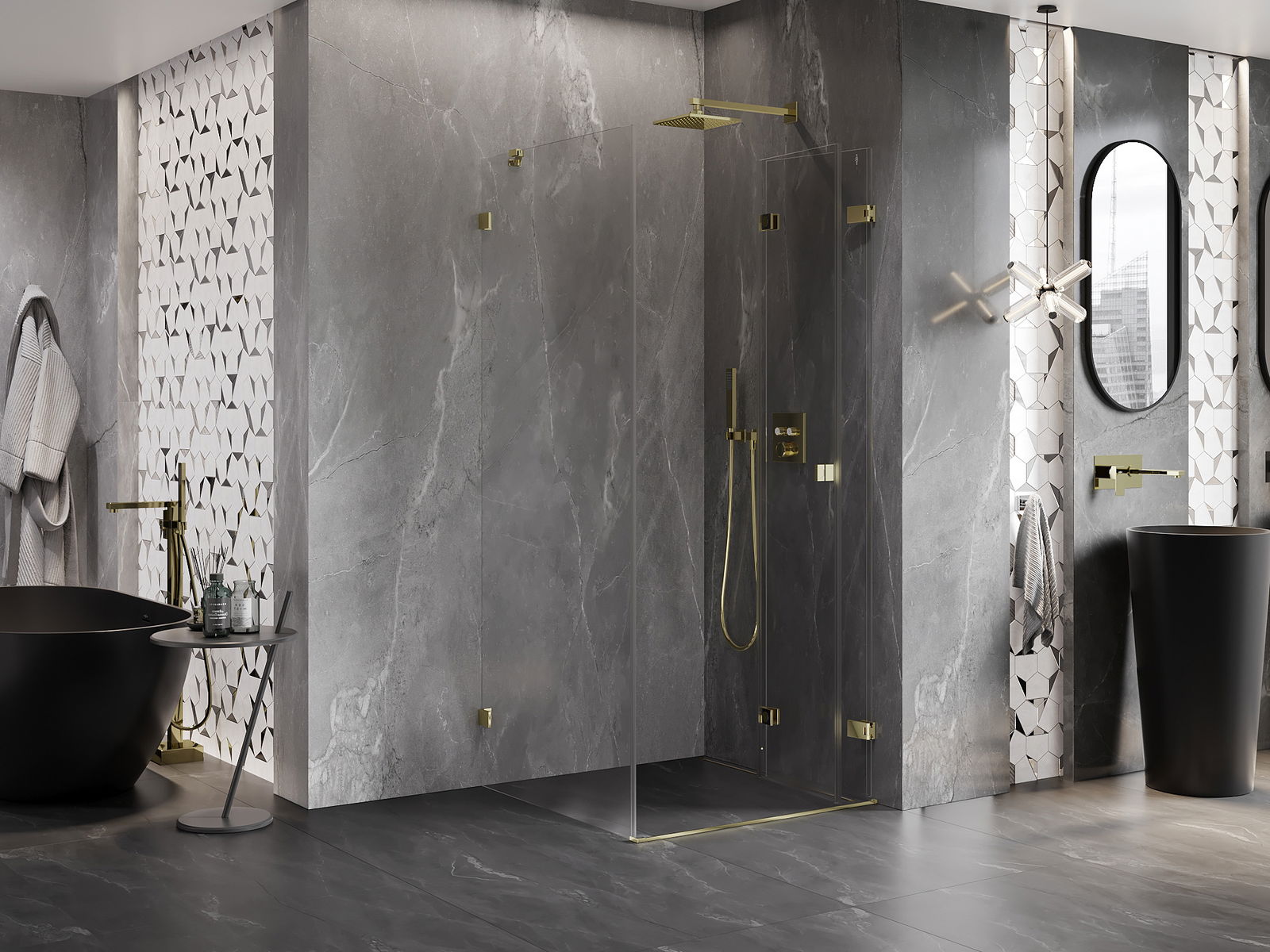 A handy and comfortable handle made from durable and resistant metal. Its trendy shape combined with a finish matched to the colour of the profiles gives the whole a modern and stylish look, highlighting the aesthetics of every bathroom.