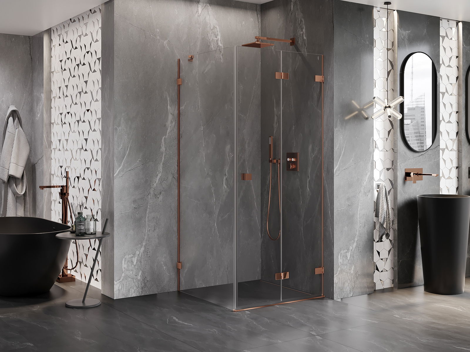 A handy and comfortable handle made from durable and resistant metal. Its trendy shape combined with a finish matched to the colour of the profiles gives the whole a modern and stylish look, highlighting the aesthetics of every bathroom.
