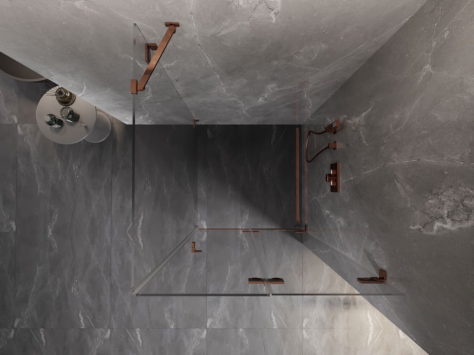 Clamps and hinges are made from very durable brass, additionally creating a flush glass surface. This is an excellent choice that combines elegance, durability, and modern design. Such solutions enhance the aesthetic of the shower while also making it easier to maintain cleanliness.