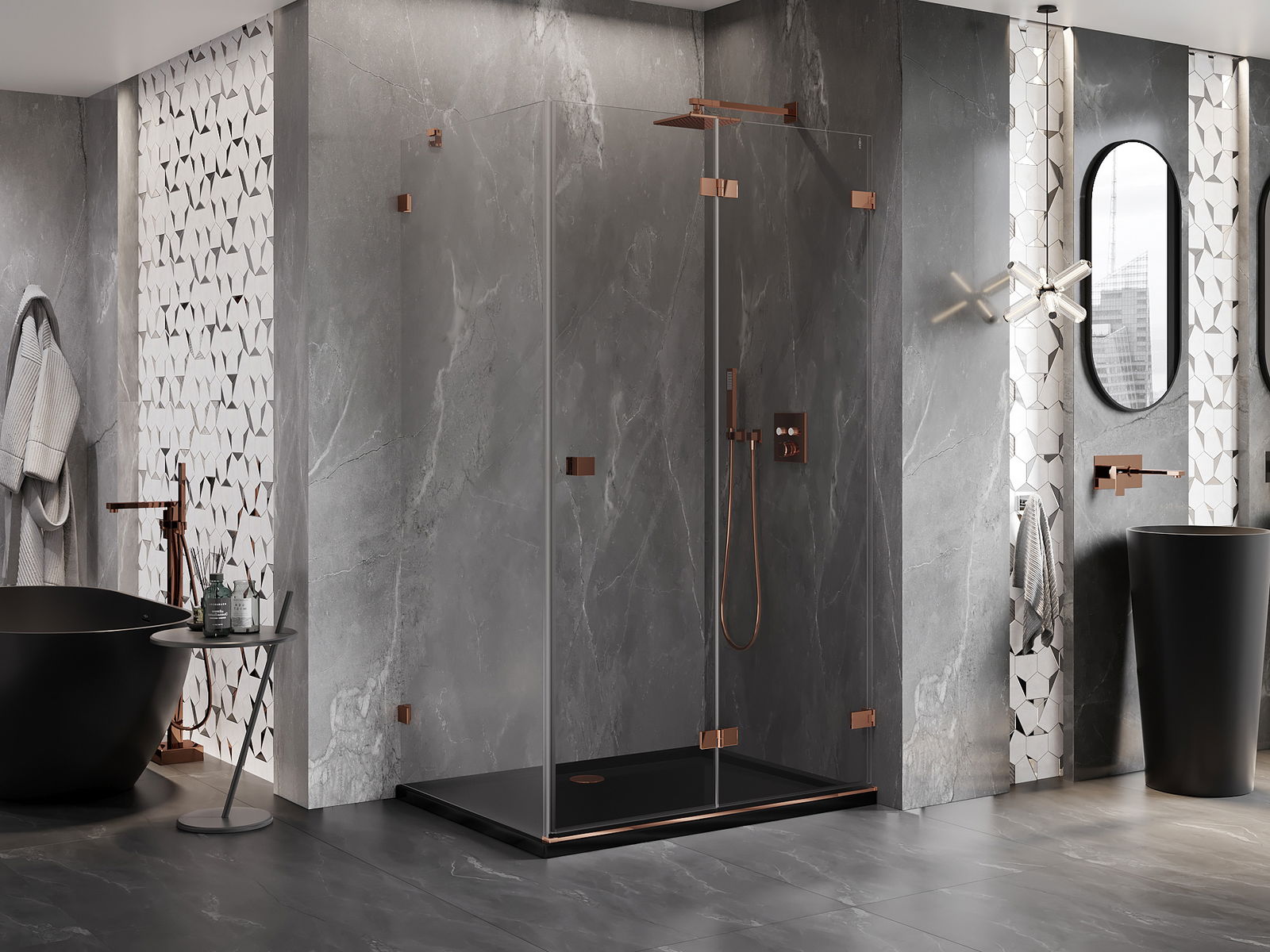A handy and comfortable handle made from durable and resistant metal. Its trendy shape combined with a finish matched to the colour of the profiles gives the whole a modern and stylish look, highlighting the aesthetics of every bathroom.