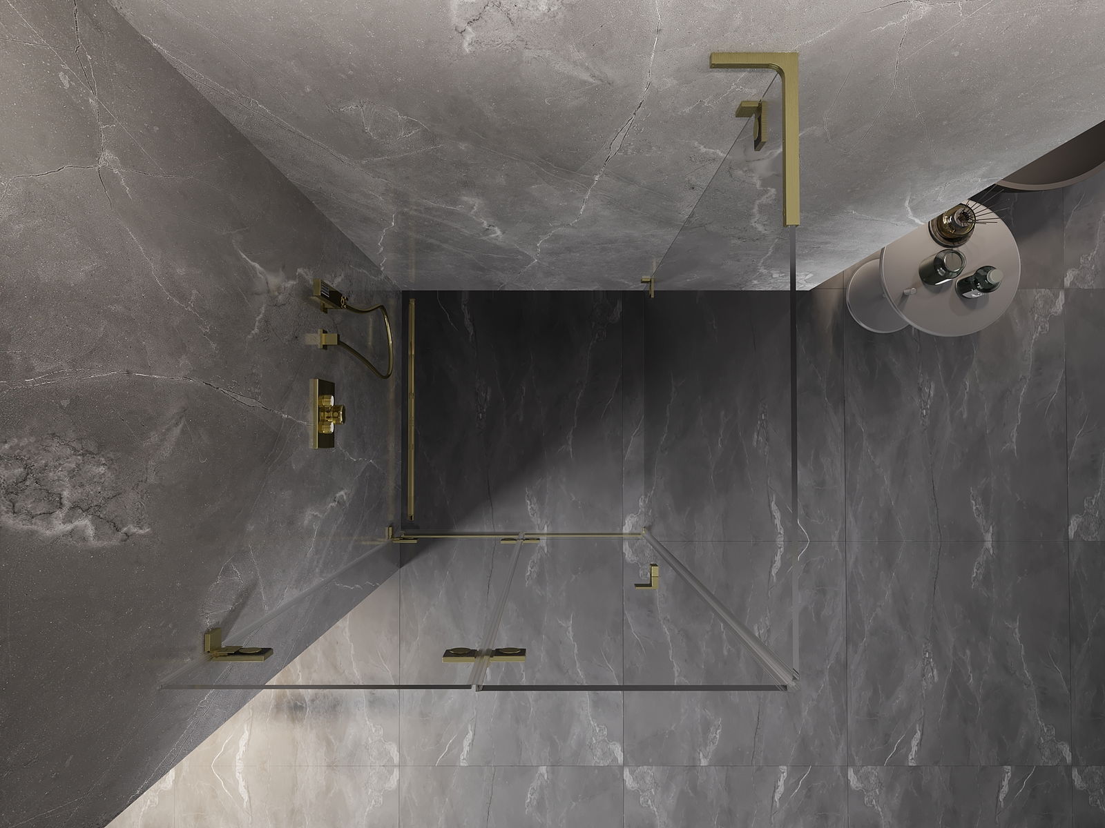 Mexen Lunar-F L folding shower enclosure left 70 x 70 cm, transparent, brushed gold - 836L-070-070-55-00-L