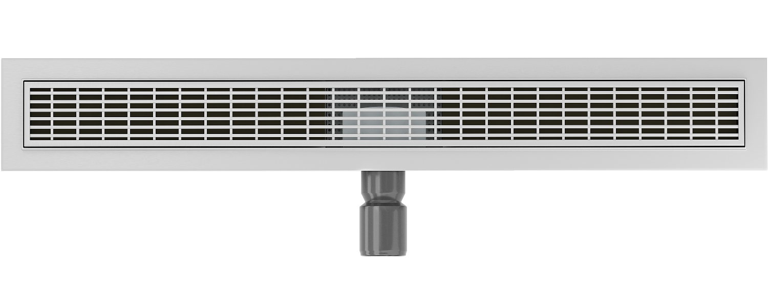 The linear drain is mounted at a depth of only 52 mm. The low depth allows for easier surface preparation for the drain installation and easy leveling, ensuring high aesthetics and effective water drainage.