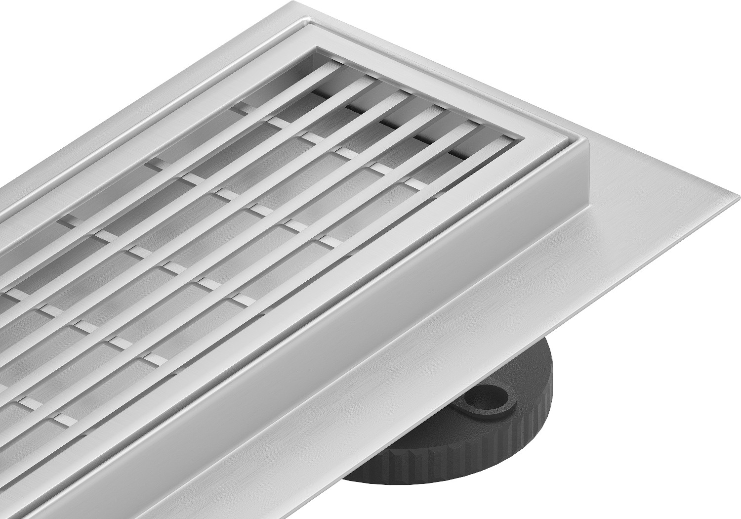 The linear drain is mounted at a depth of only 52 mm. The low depth allows for easier surface preparation for the drain installation and easy leveling, ensuring high aesthetics and effective water drainage.