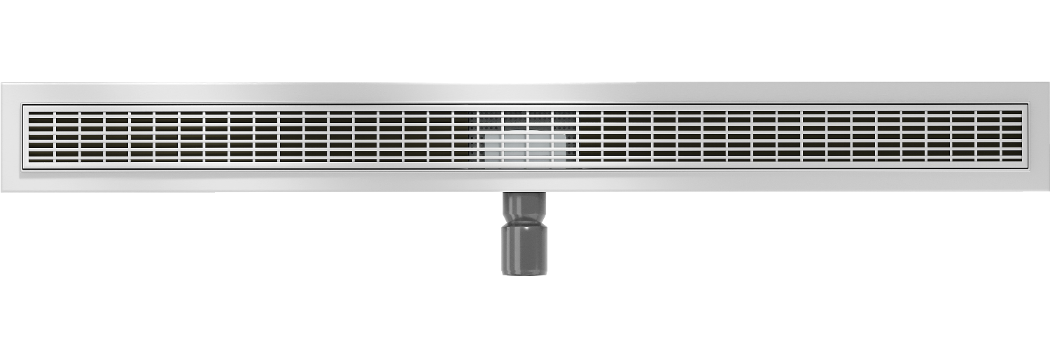 The linear drain is mounted at a depth of only 52 mm. The low depth allows for easier surface preparation for the drain installation and easy leveling, ensuring high aesthetics and effective water drainage.
