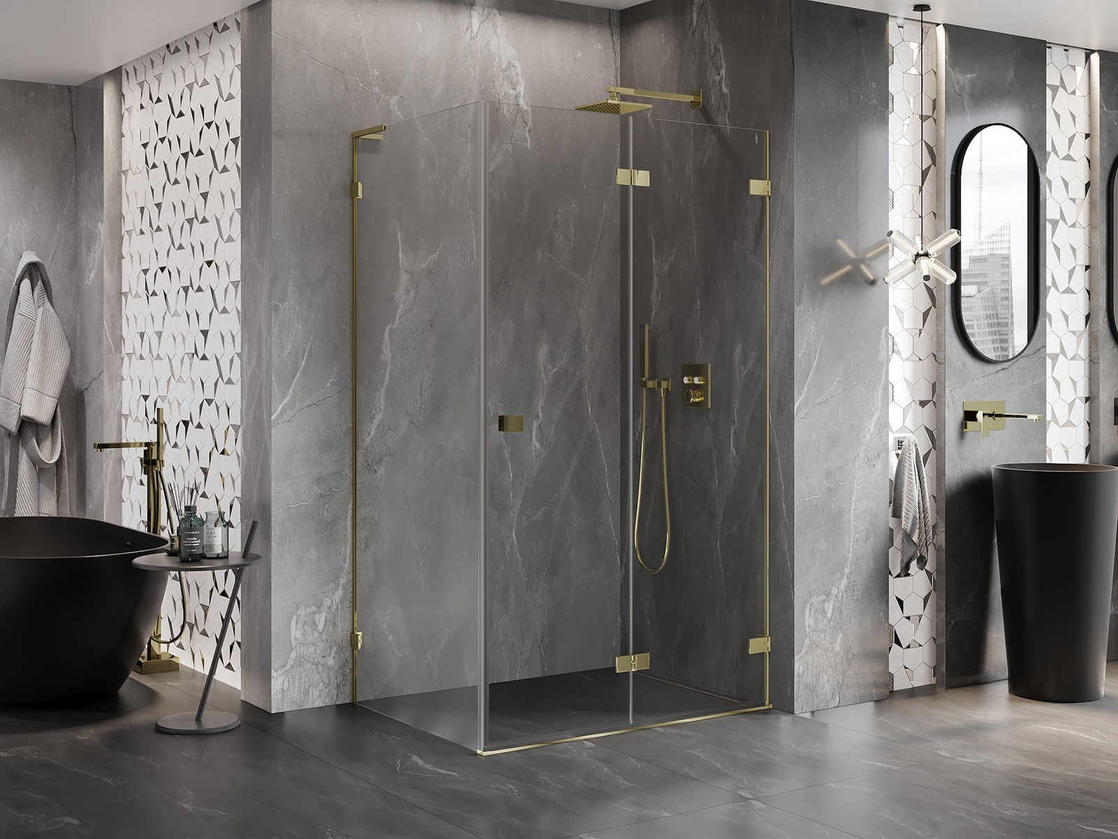 Mexen Lunar-F L folding shower cabin right 80 x 70 cm, transparent, gold - 836L-080-070-50-00-P
