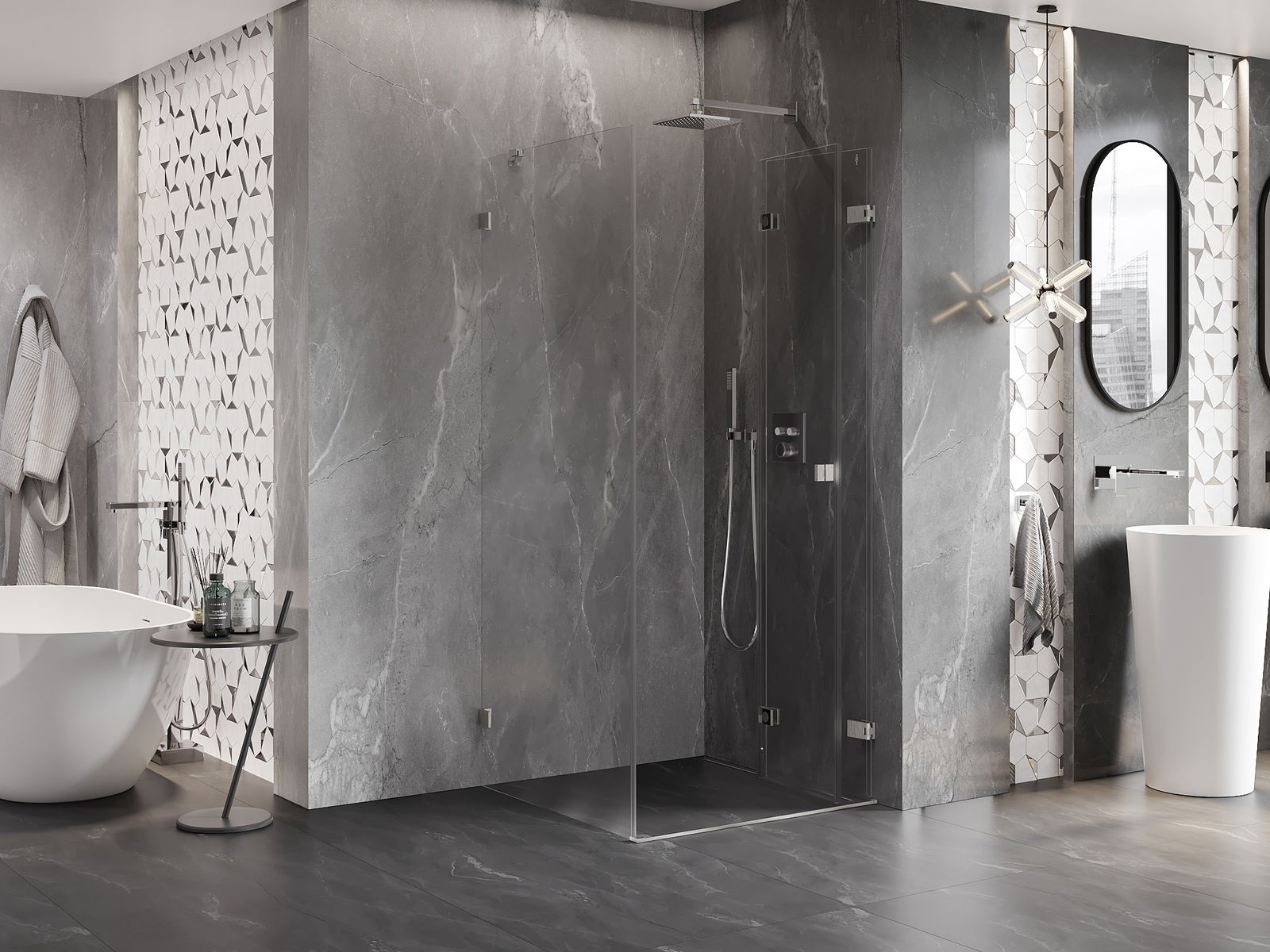 A handy and comfortable handle made from durable and resistant metal. Its trendy shape combined with a finish matched to the colour of the profiles gives the whole a modern and stylish look, highlighting the aesthetics of every bathroom.
