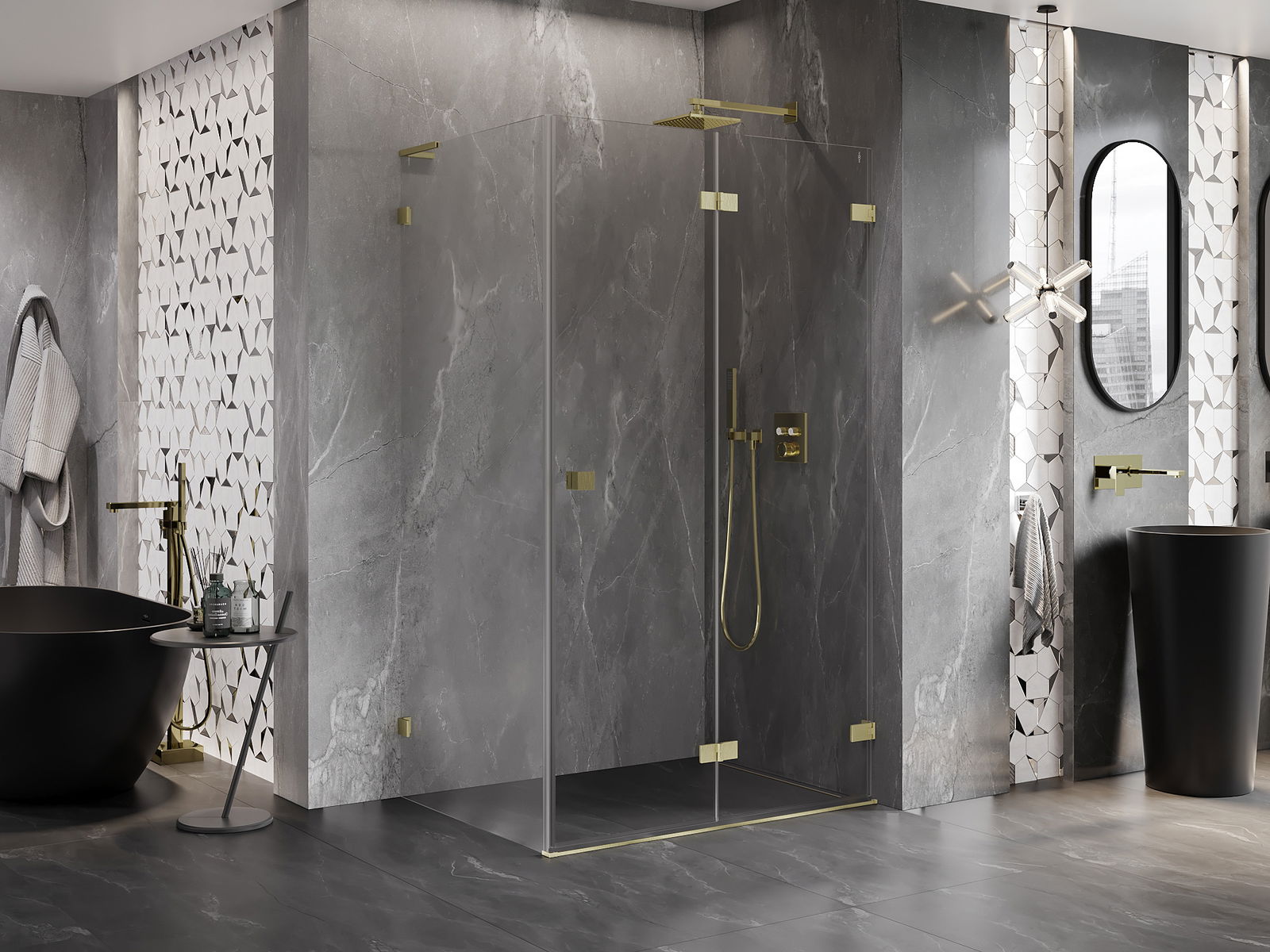 Mexen Lunar-F L right folding shower enclosure 90 x 80 cm, transparent, brushed gold - 836L-090-080-55-00-P