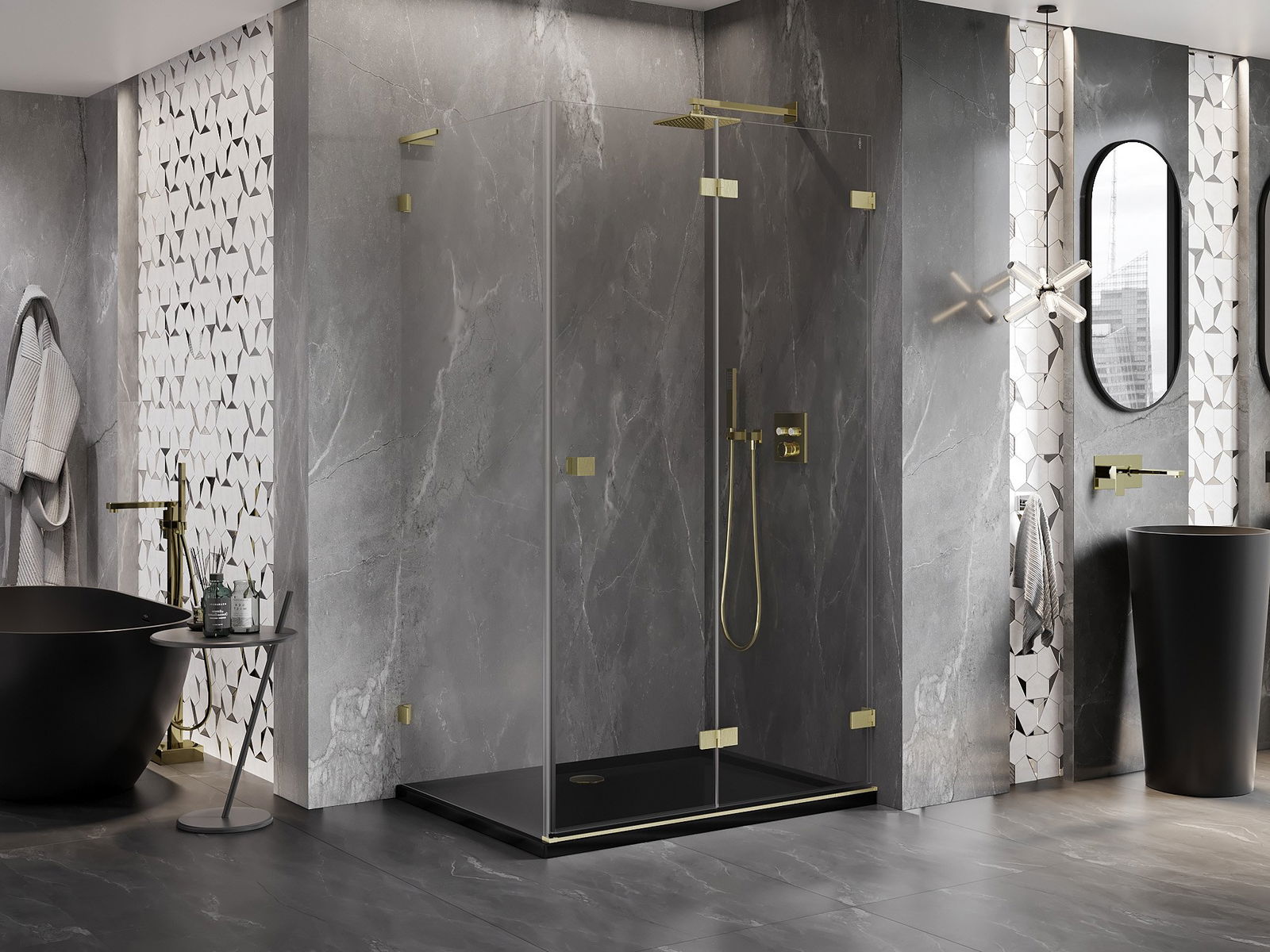 A handy and comfortable handle made from durable and resistant metal. Its trendy shape combined with a finish matched to the colour of the profiles gives the whole a modern and stylish look, highlighting the aesthetics of every bathroom.