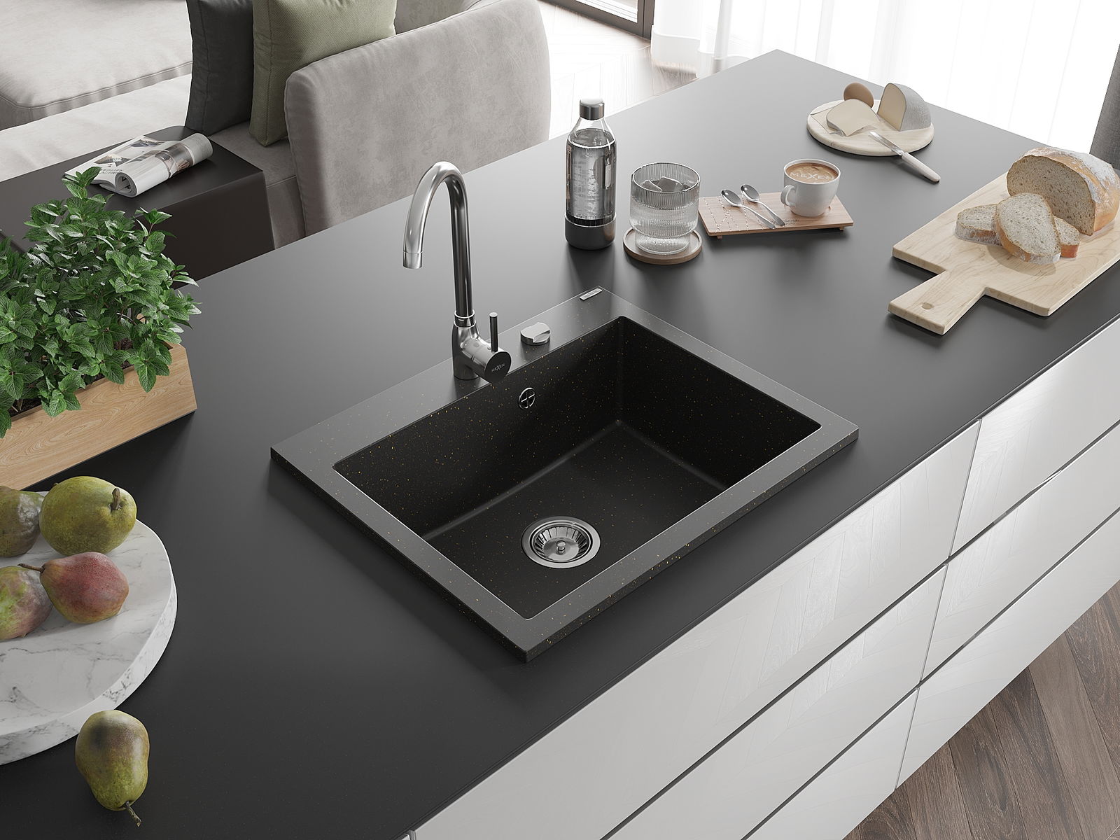 The surface of the sink is resistant to stains and discolouration, making it easy to maintain cleanliness and retain its colour for a long time of use. An aesthetic and practical addition to any kitchen.