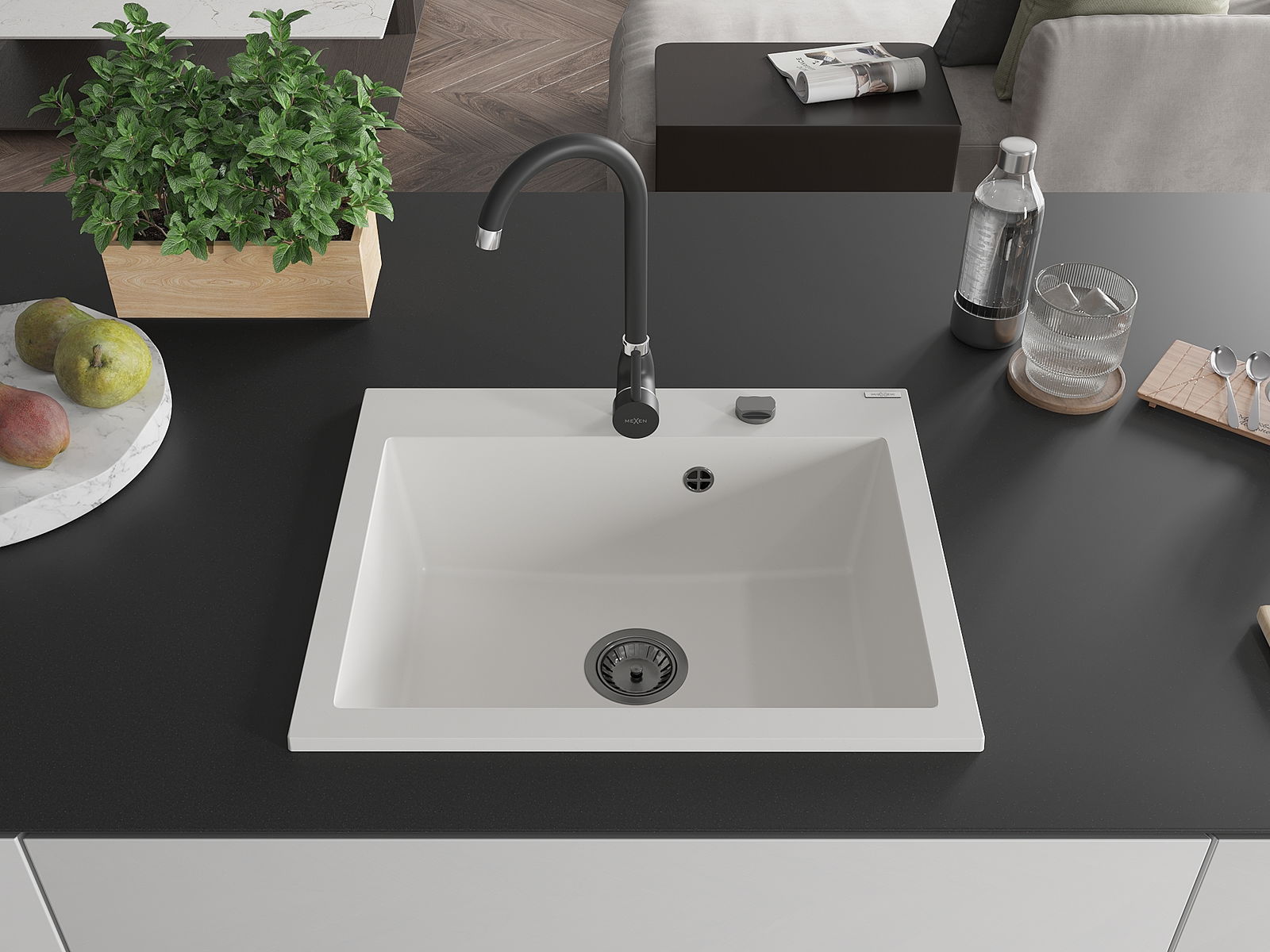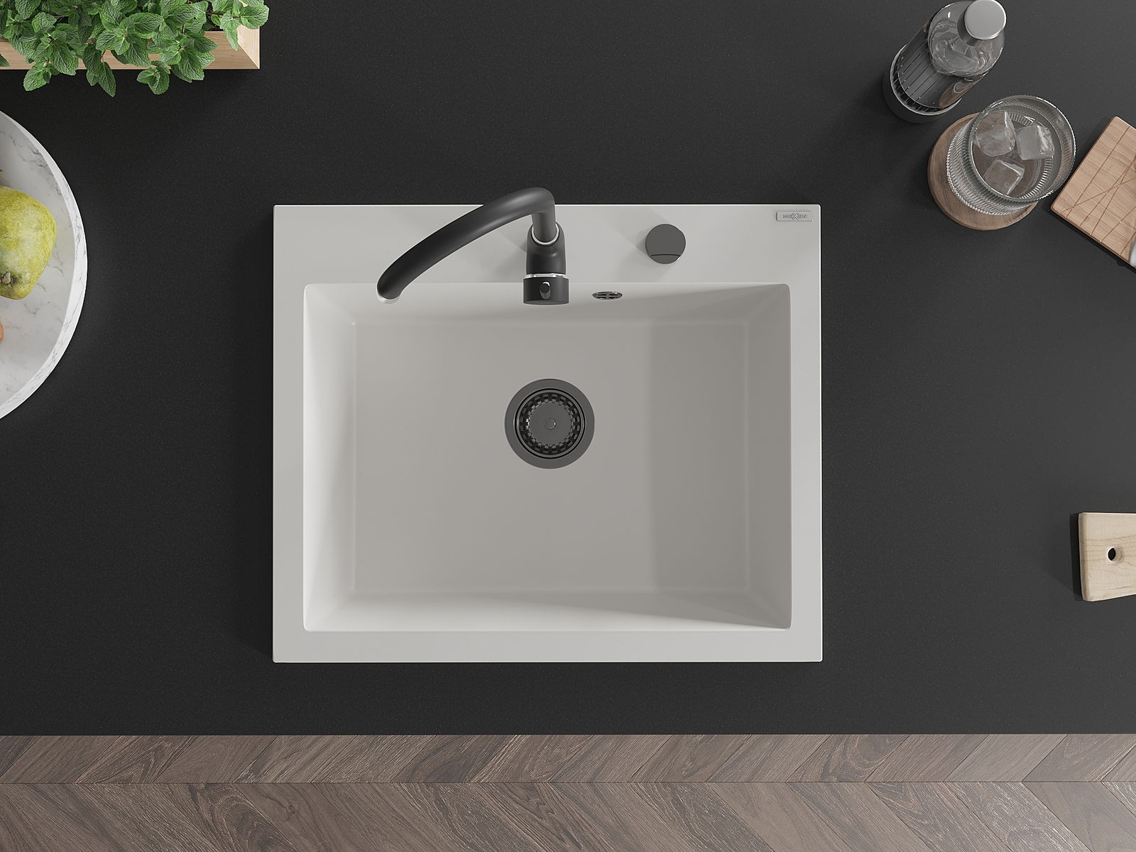 The surface of the sink is resistant to stains and discolouration, making it easy to maintain cleanliness and retain its colour for a long time of use. An aesthetic and practical addition to any kitchen.