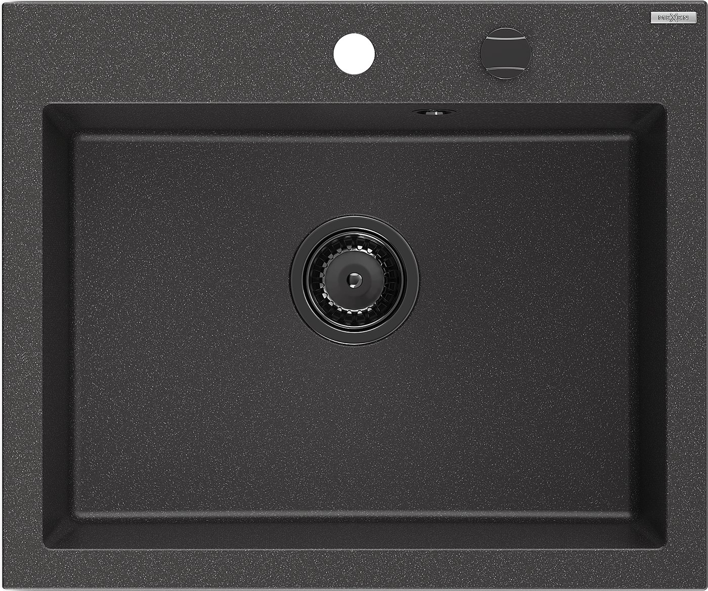 Mexen Elix granite sink single-bowl 600 x 500 mm, black speckled, black siphon - 6525601005-76-B
