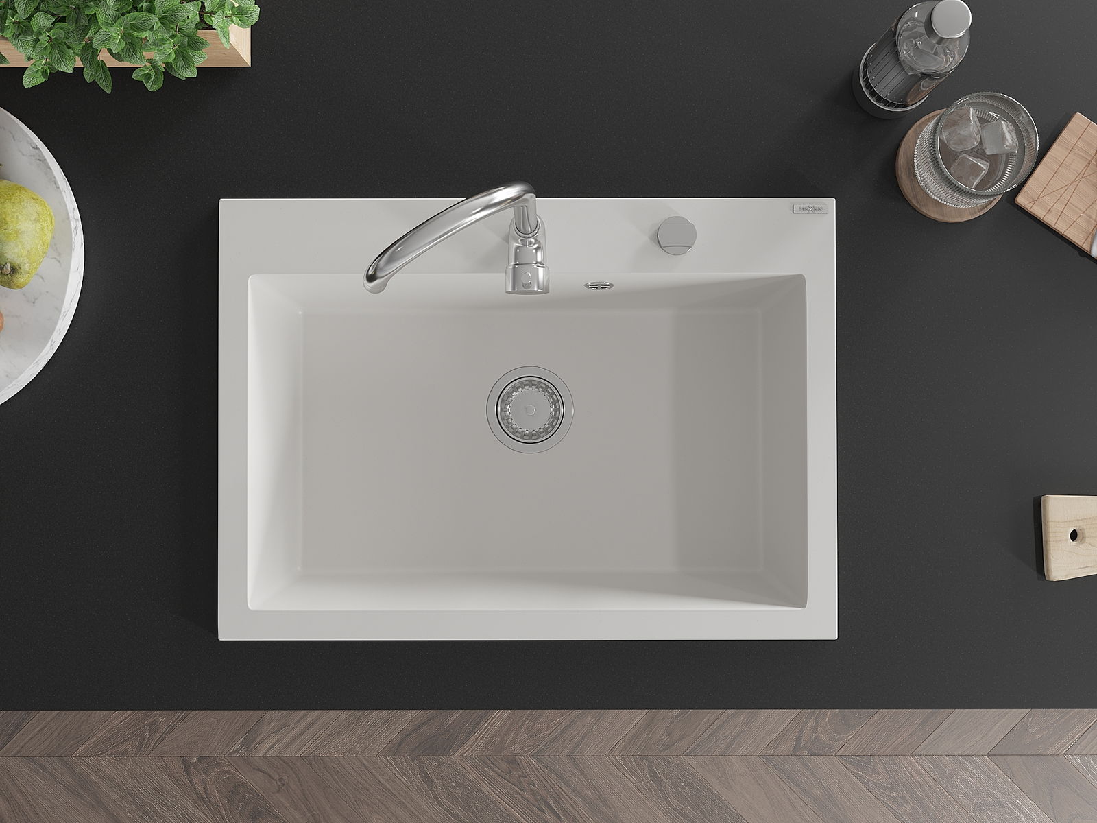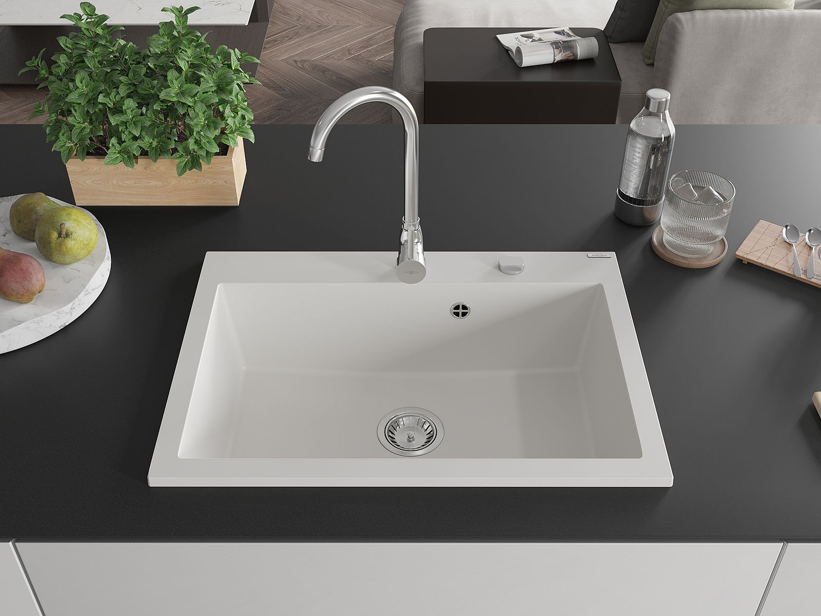 The surface of the sink is resistant to stains and discolouration, making it easy to maintain cleanliness and retain its colour for a long time of use. An aesthetic and practical addition to any kitchen.